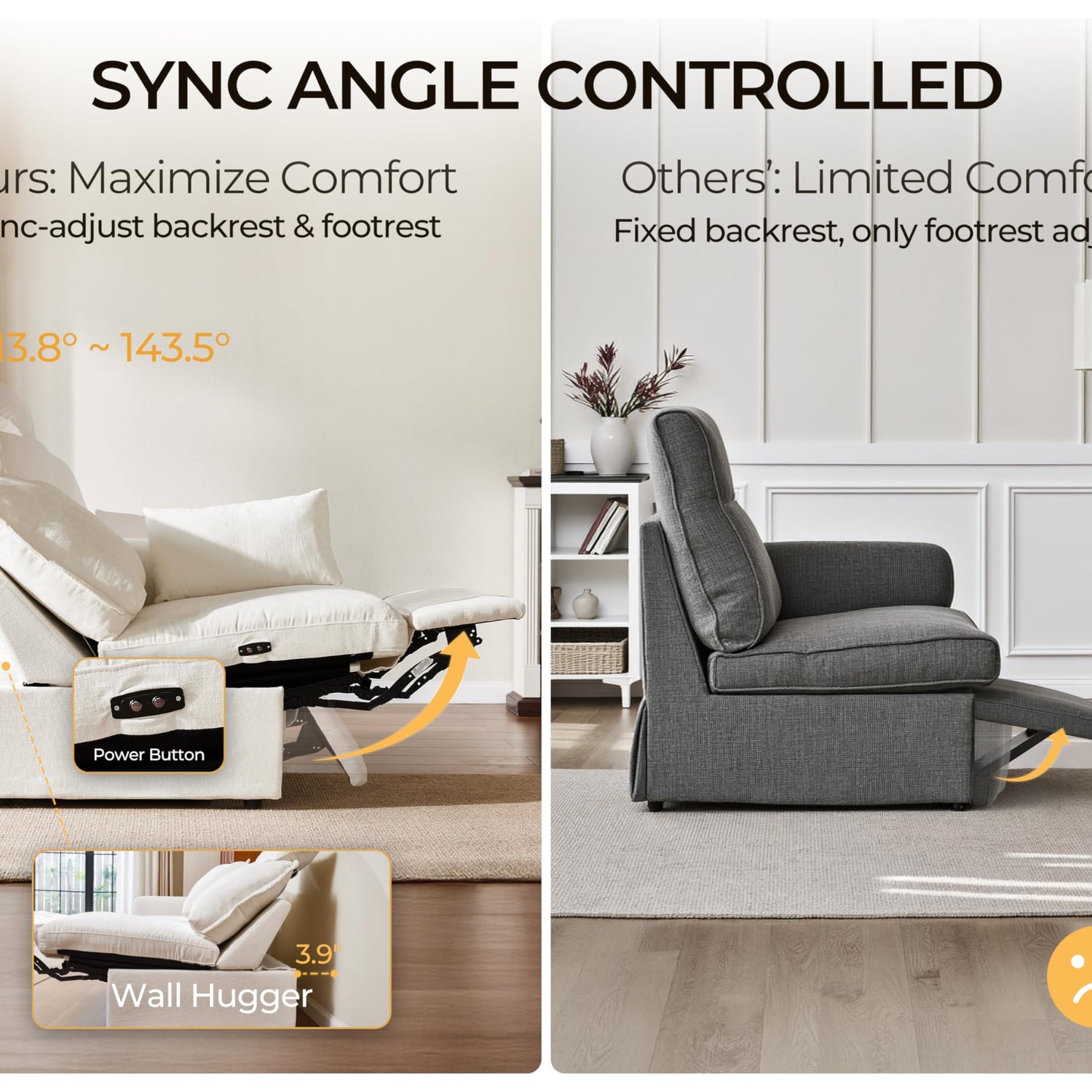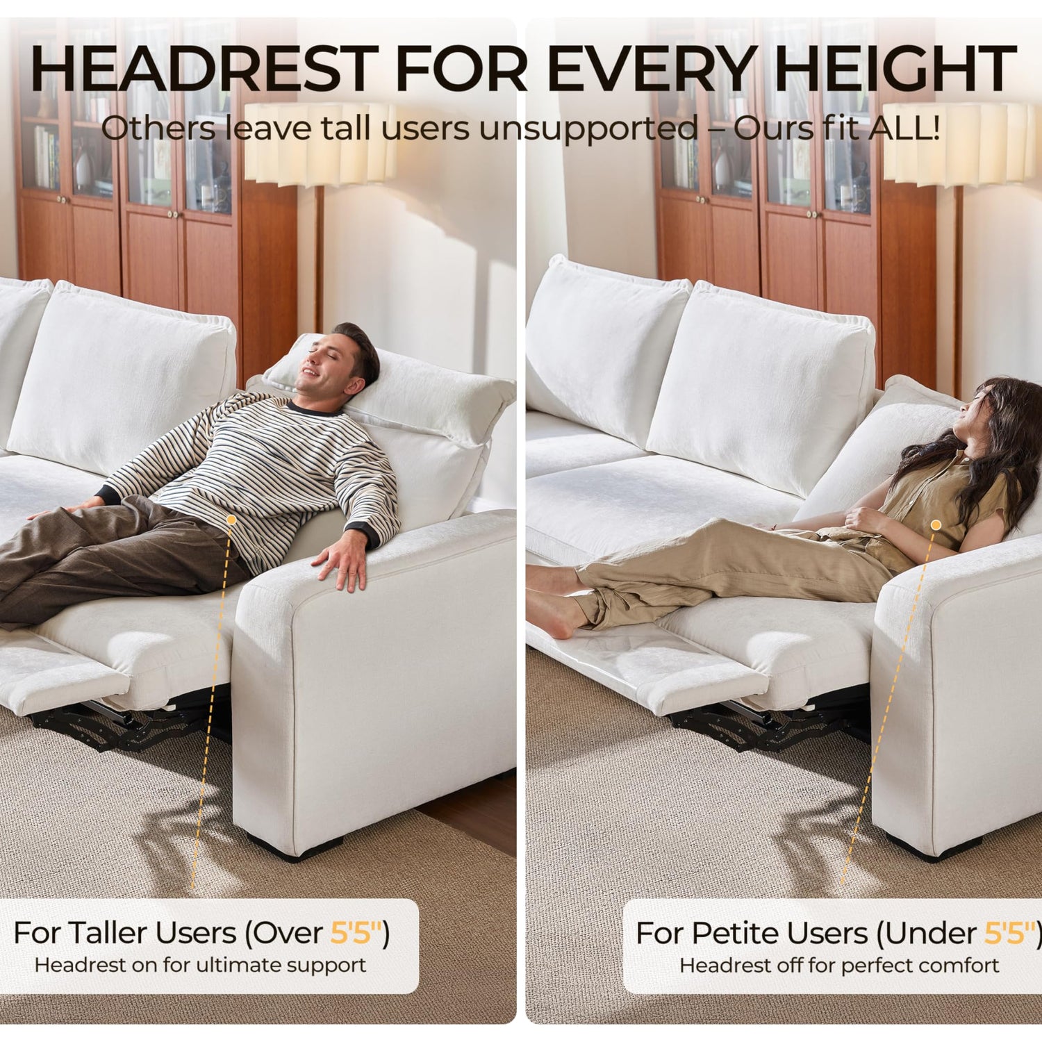 - 【Revolutionary Power Recliner for Every Height】 Most recliner sofas fail taller users, leaving their head unsupported and causing frustration. Our wall-hugger electric recliner solves this by offering an extended headrest that cradles your neck and head perfectly—even for those as tall as 6’7’’. The removable headrest allows smaller users to detach it if not needed. Experience relaxation so extraordinary, the recliner amazes every user