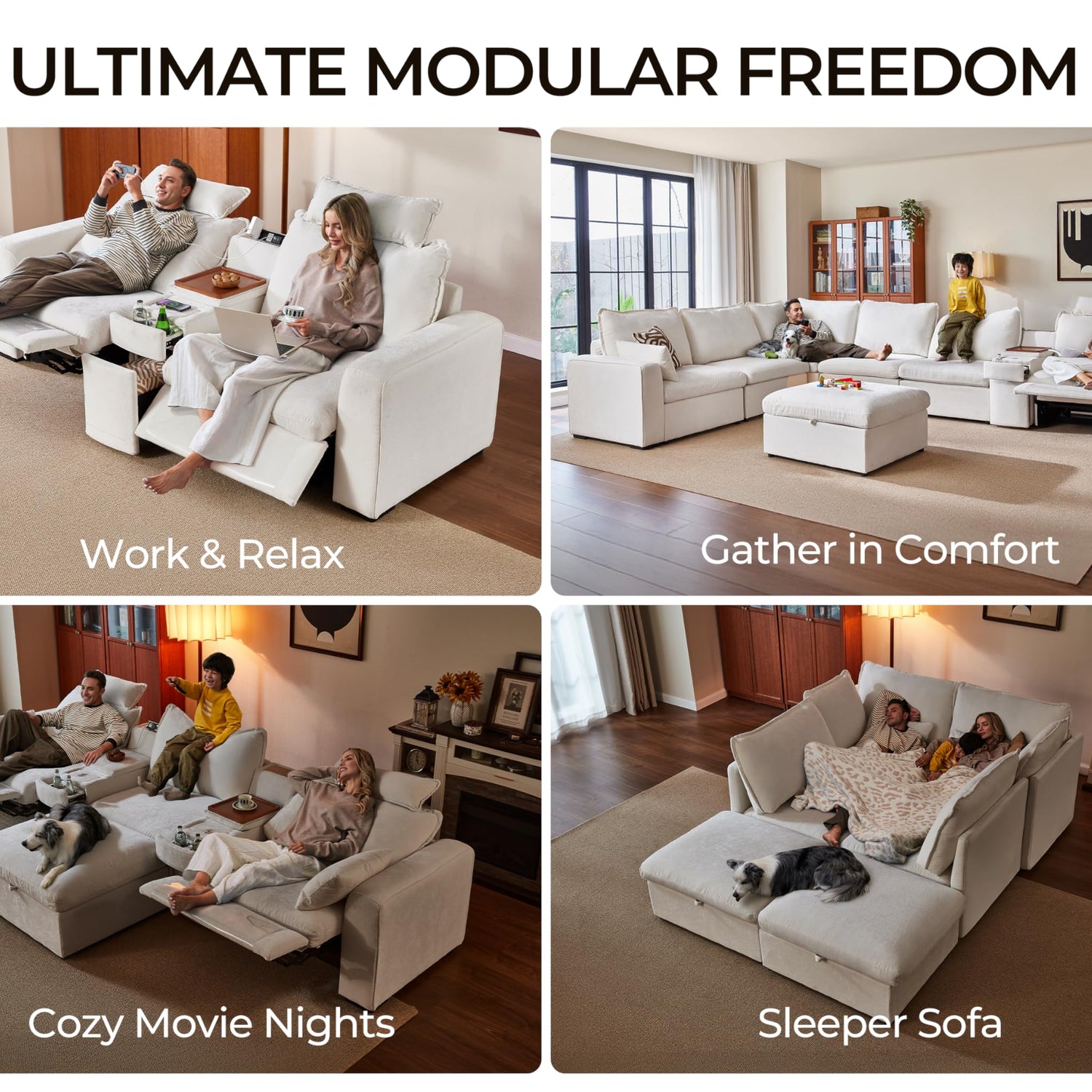 - 【Customizable Modular Design for Any Space】 Effortlessly customize your modern sofa with recliner and chaise with a modular design that adapts to your needs. Arrange it as an L-shaped sectional, U-shaped sofa, corner sectional, or sleeper sofa. Each piece can be swapped and repositioned for flexibility without shifting. Sturdy metal connectors keep everything in place for stability. Easy to assemble—one person can set it up in 30 minutes, no extra tools required