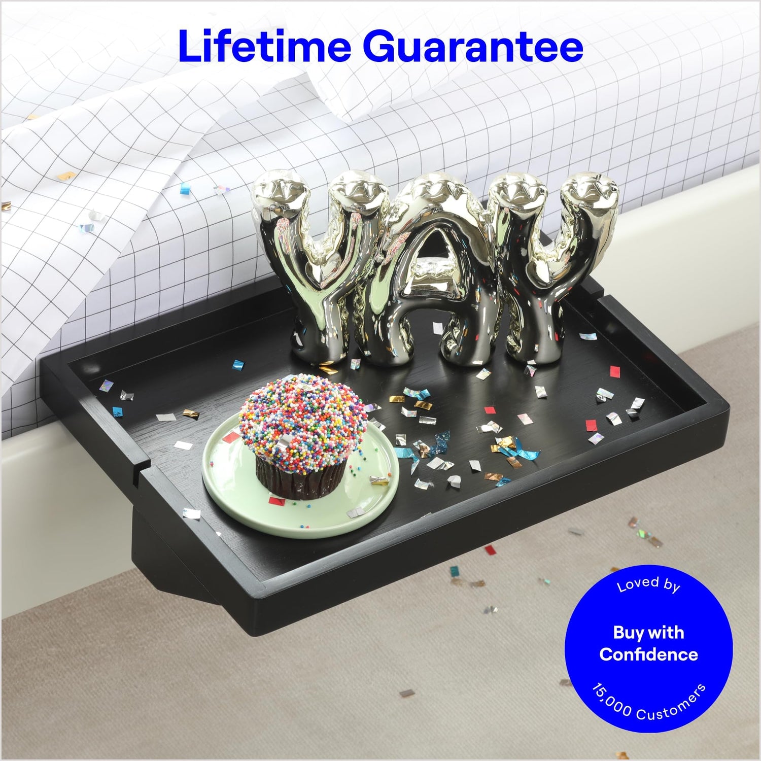 Details: The BedShelfie Bed Tray is a rethink of the age-old nightstand inspired by Small Space Living & Minimalism. It’s designed for minimalists freeing themselves of clunky furniture, looking at you Tiny House Peeps, Urbanites mastering the fine art of Small Space City Living. College Students squeezed into sardine-like rooms looking for a dorm bed shelf cup holder headboard as a graduation gift or back to school essential. Parents who want to give their kids additional space using bunk bed shelf attachment or bunk bedside tray shelf or bunk bed clip on shelf. A clean & minimal design profile for versatility - A wire slot for easy device charging - A versatile clamp design that accommodates bed frames up to 2.25 inches wide - A sturdy hold - it can hold up to 15 nightstand room alarm clock loft modern night stands bedrooms top stand table college items dorms essentials accessories caddy clip on bedroom side cup holder headboard bunkbed book kid fold up student mini shelves beds acessories tables black metal and wood end attachable hanging gadgets clamp accessory attachment students accessorys frame post living small portable adjustable accesories boys