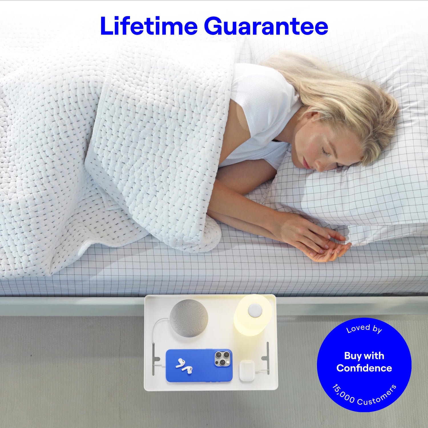 - EFFORTLESS NO-TOOL INSTALLATION: Our intuitive design eliminates the need for complex instruction manuals. The BedShelfie caddy tray is incredibly versatile, serving as a headboard shelf, sofa tray, changing table, or cord organizer. It is particularly popular with city dwellers, as one of dorm room essentials for college students, a room decor, a teen room nightstand or a kids side table. Safely holding up to 35lbs, this floating nightstand can hold a 13-inch MacBook, phone, water, and more!