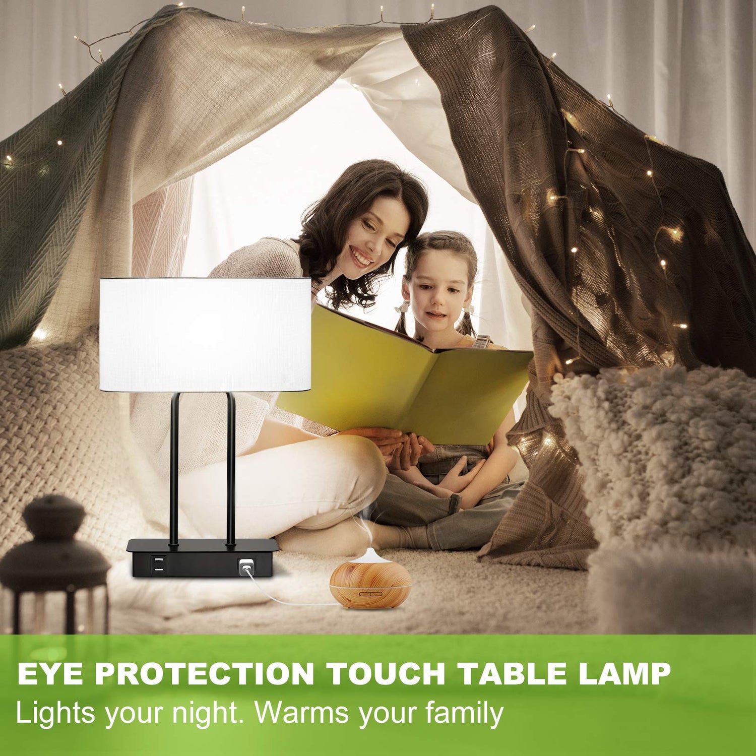 - 2 USB Charging Ports and 1 AC Power Outlet: Are you once troubled with lock of charging sockets or your USB cable is too short to reach you when you siting beside your desk lamp? Well, every problem you suffered before have been resolved by our touch control table lamp, which has dual USB ports 1 AC outlet for charging your phones, laptops, humidifier, kindle, headsets, speaker or other electronics even the bedroom lamp is off.