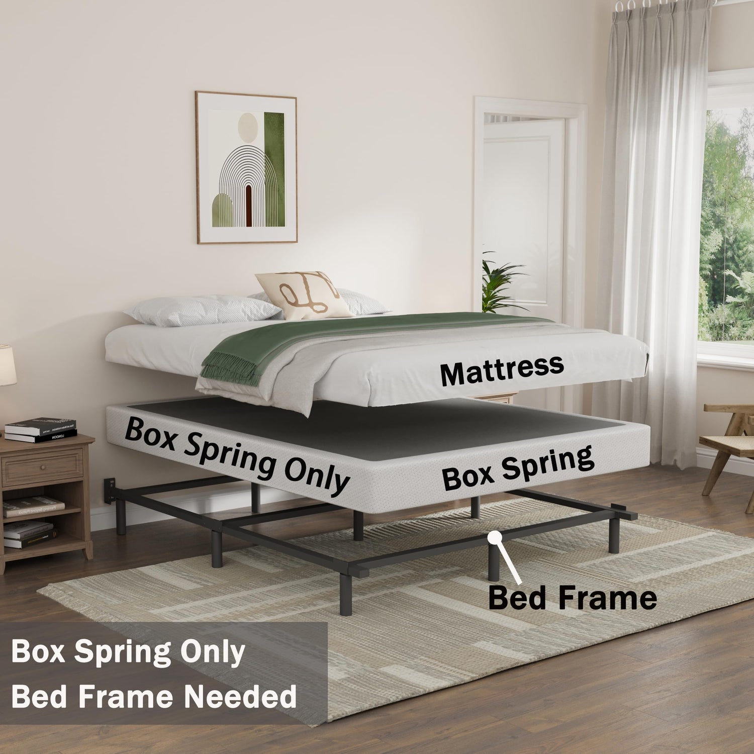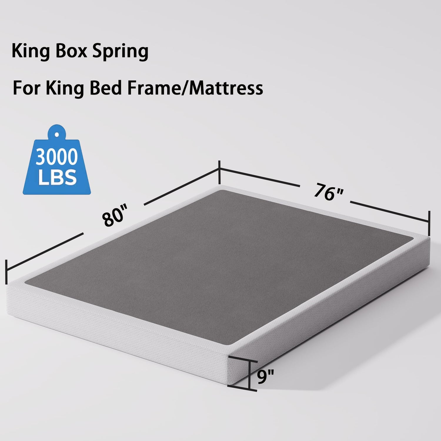 Details: Bedsnus King Size Box Spring and Cover Set, 9 Inch High Profile Metal BoxSpring, Heavy Duty Structure Mattress Foundation, Noise Free, Non-Slip, Easy Assembly