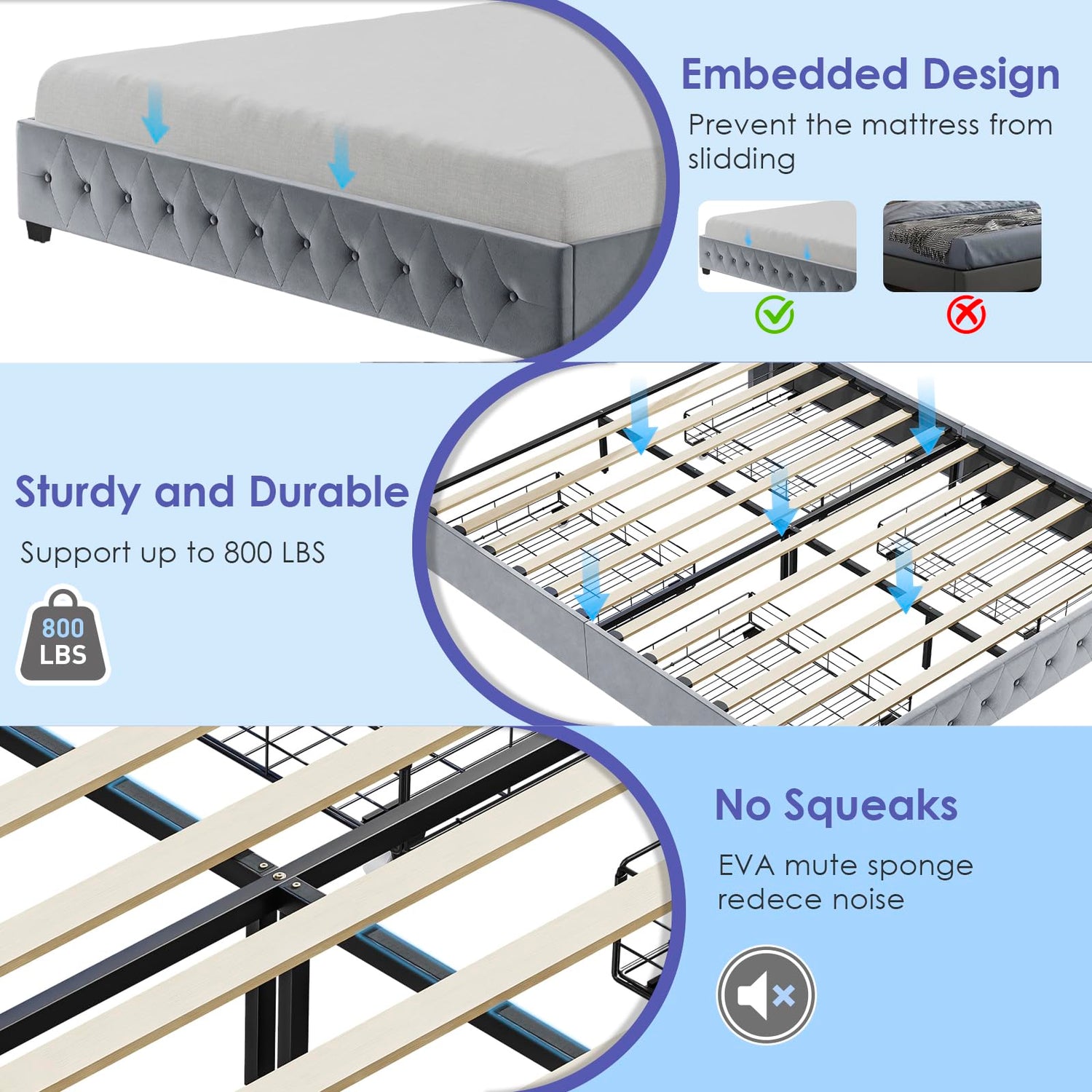 - 【Easy To Assemble】Packaged in one box, this grey queen size bed frame comes with a full complement of accessories and easy-to-read instruction manual for a quick start,it is easy to assemble in less than 30 minutes, saving you time and effort
