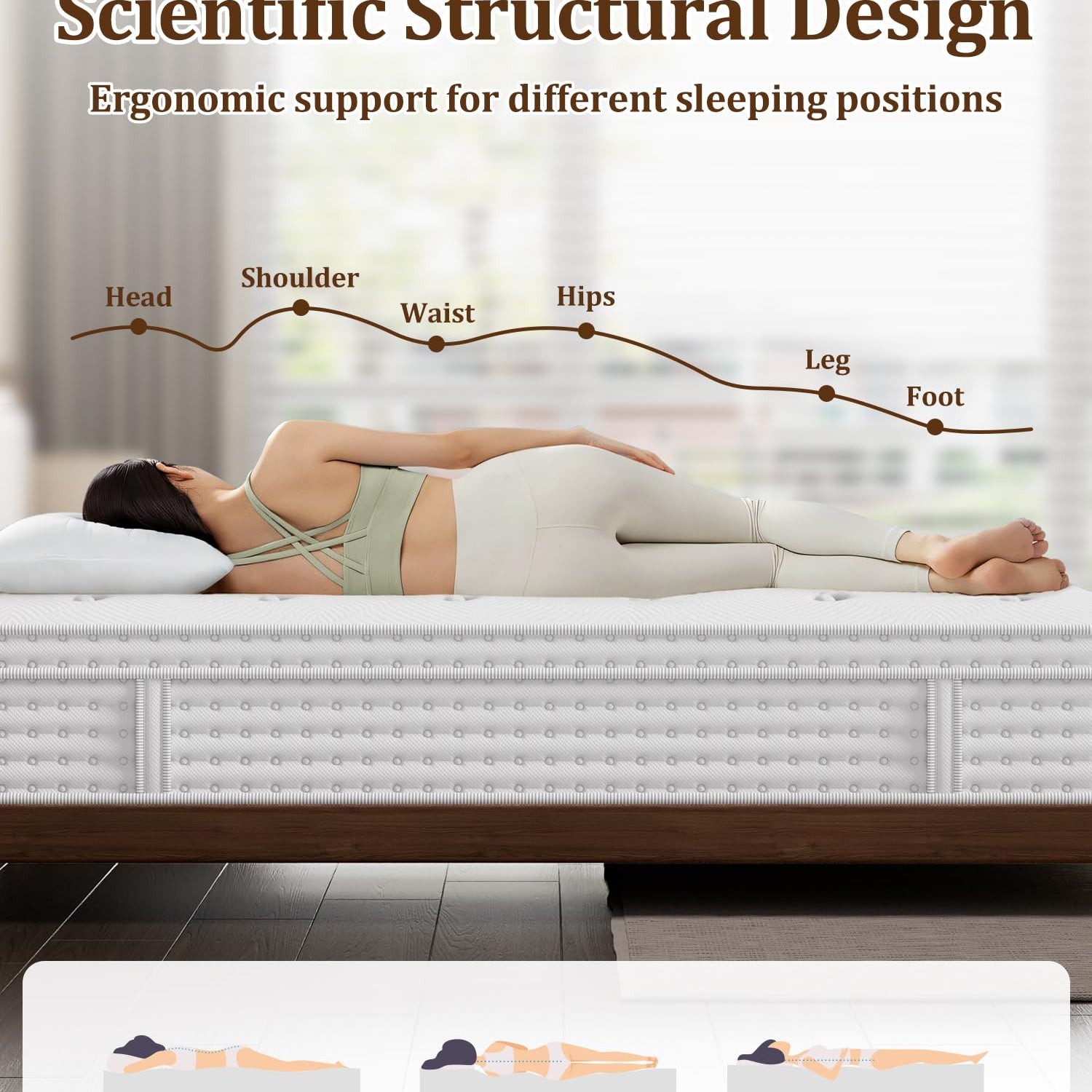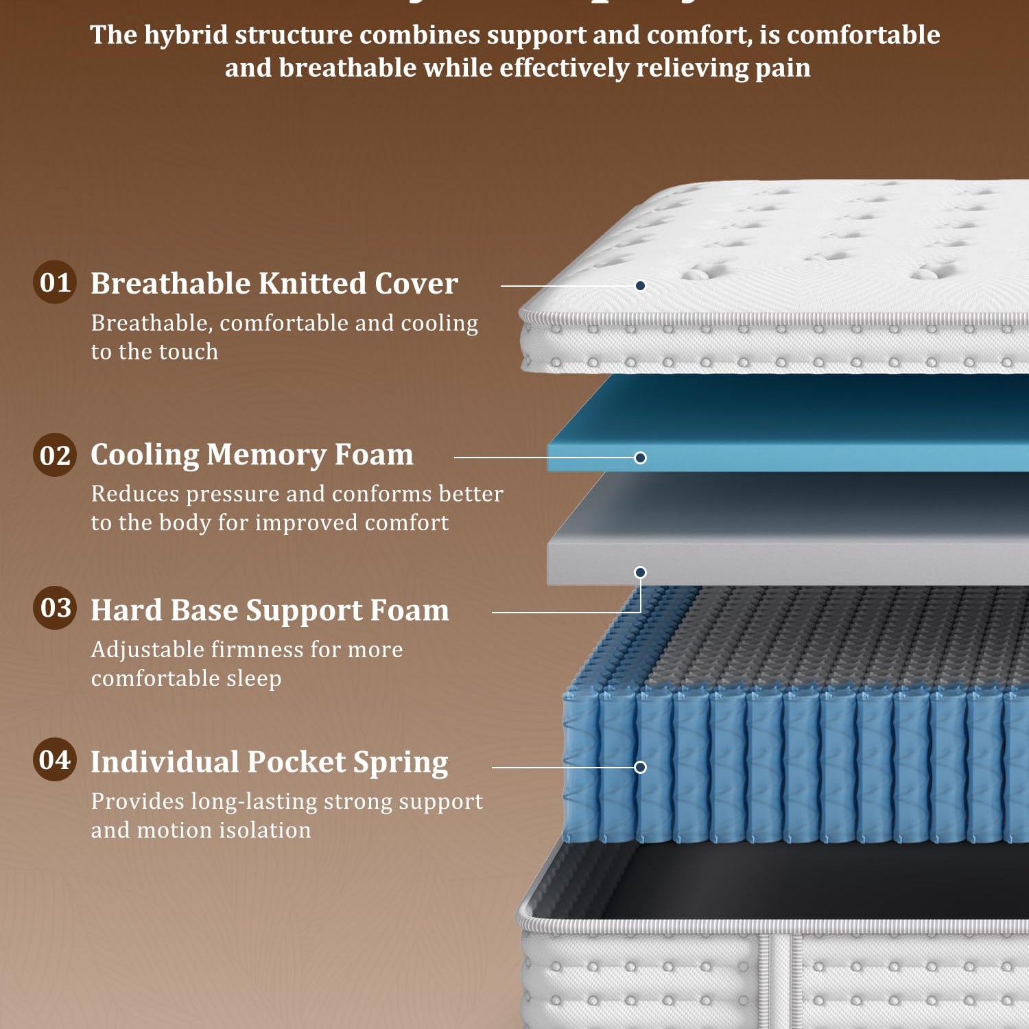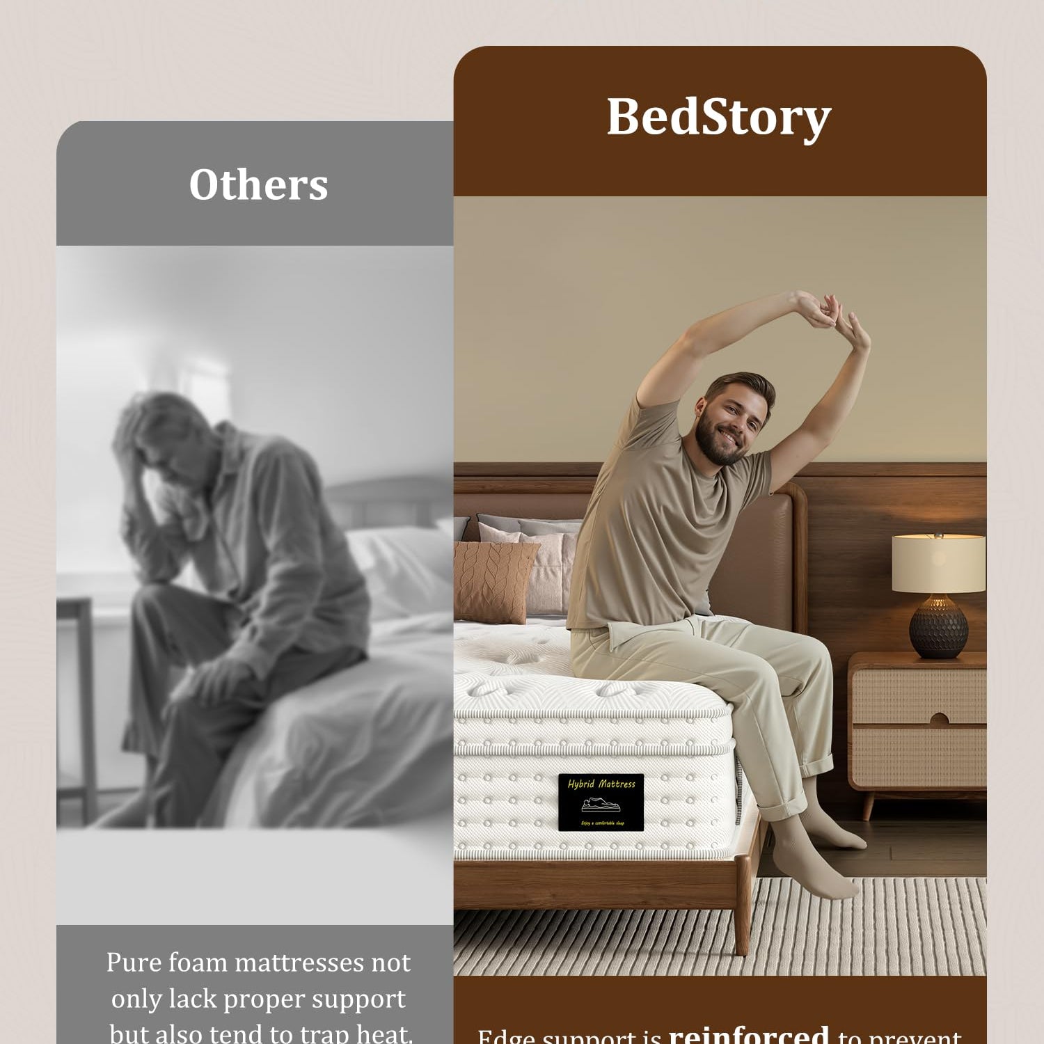 - Stable Support & Edge Reinforcement: Built with reinforced 2.3mm individually pocketed coils and edge-support design, this mattress delivers consistent stability from the center to the edges. Prevents sagging and roll-off, maintaining shape and performance over time, and supports up to 600 lbs.