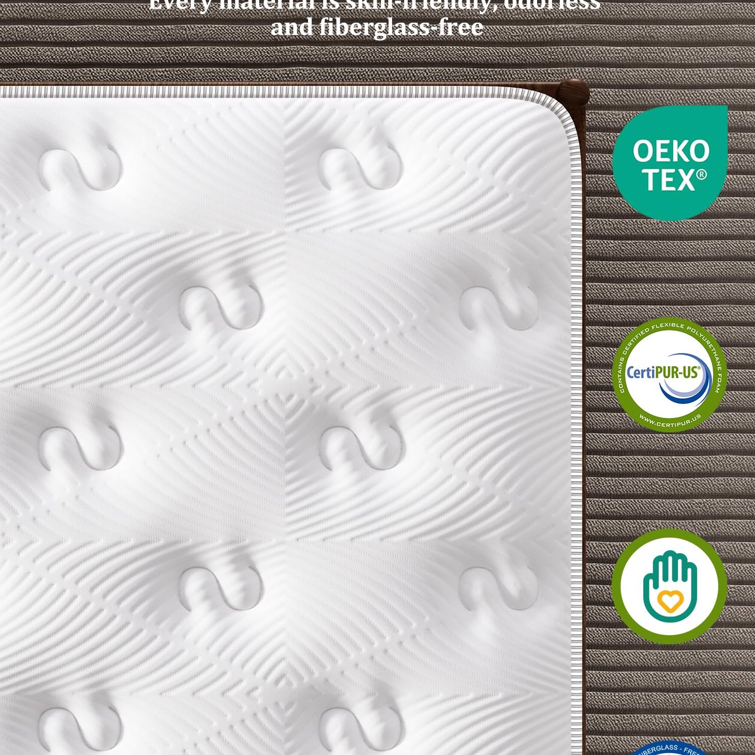 - Certified Safe & Health Protection: Certified by CertiPUR-US and OEKO-TEX for a safe, healthy, and fiberglass-free sleep environment. Our mattress is made without ozone depleters, mercury, lead, formaldehyde, phthalates, or other harmful substances commonly found in consumer products, ensuring a healthier sleep space.