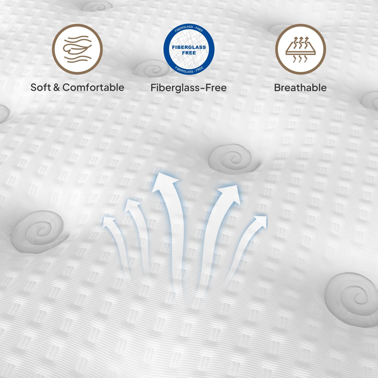 - Balance Support & Pressure Relief:The hybrid mattress construction combines the support of pocket springs with the soft feel of premium foam layers, aintain natural spine curvature, and alleviate pressure for optimal sleep posture. Meanwhile, spring gaps facilitate air circulation, reducing heat build-up and ensuring a breathable surface for enhanced comfort during sleep.