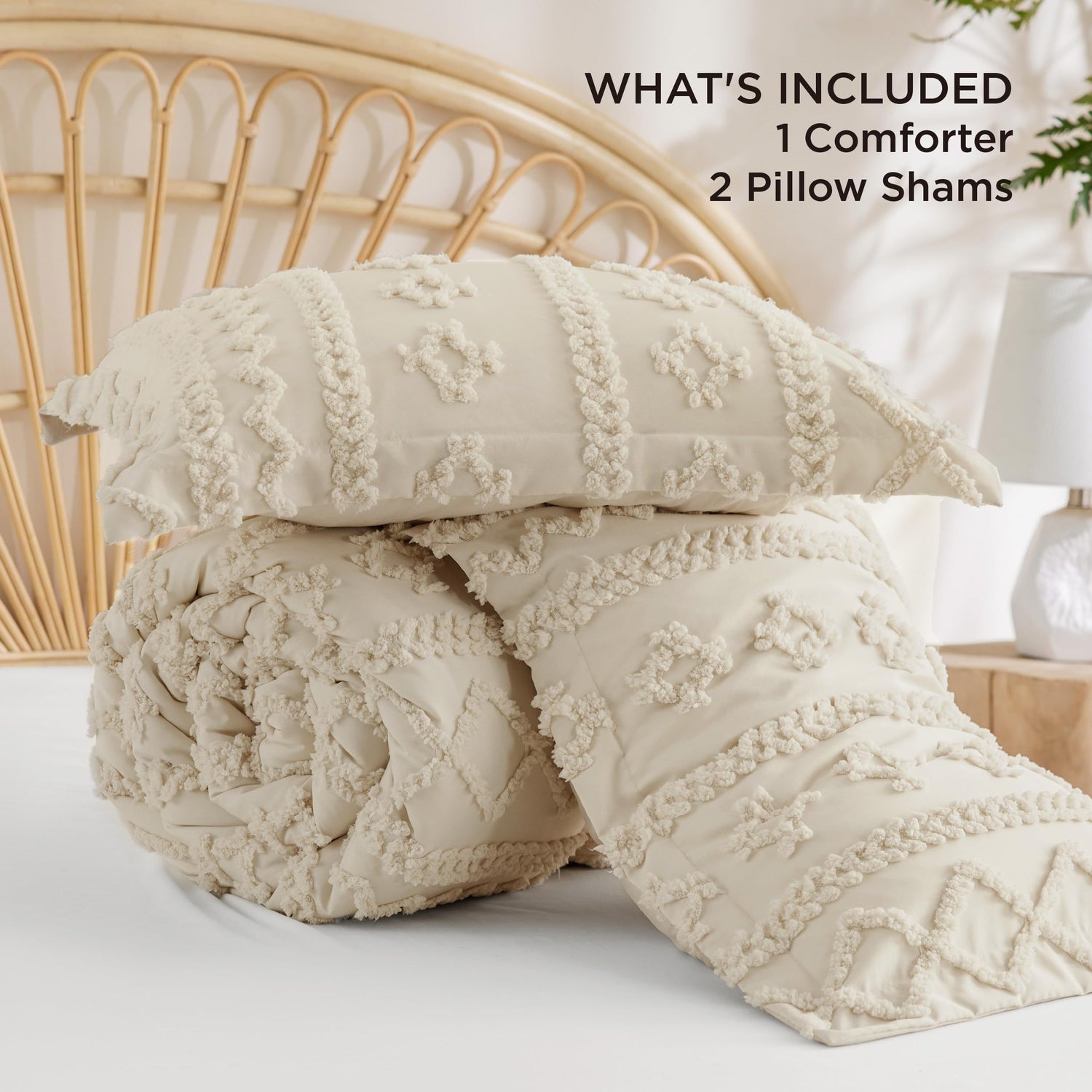 Bedsure Tufted Boho Comforter Set King Size - Beige Boho Bed Set, GentleSoft™ 3 Pieces Farmhouse Shabby Chic Embroidery Bedding, Gifts for Woman, Soft Jacquard King Comforter for All Seasons
