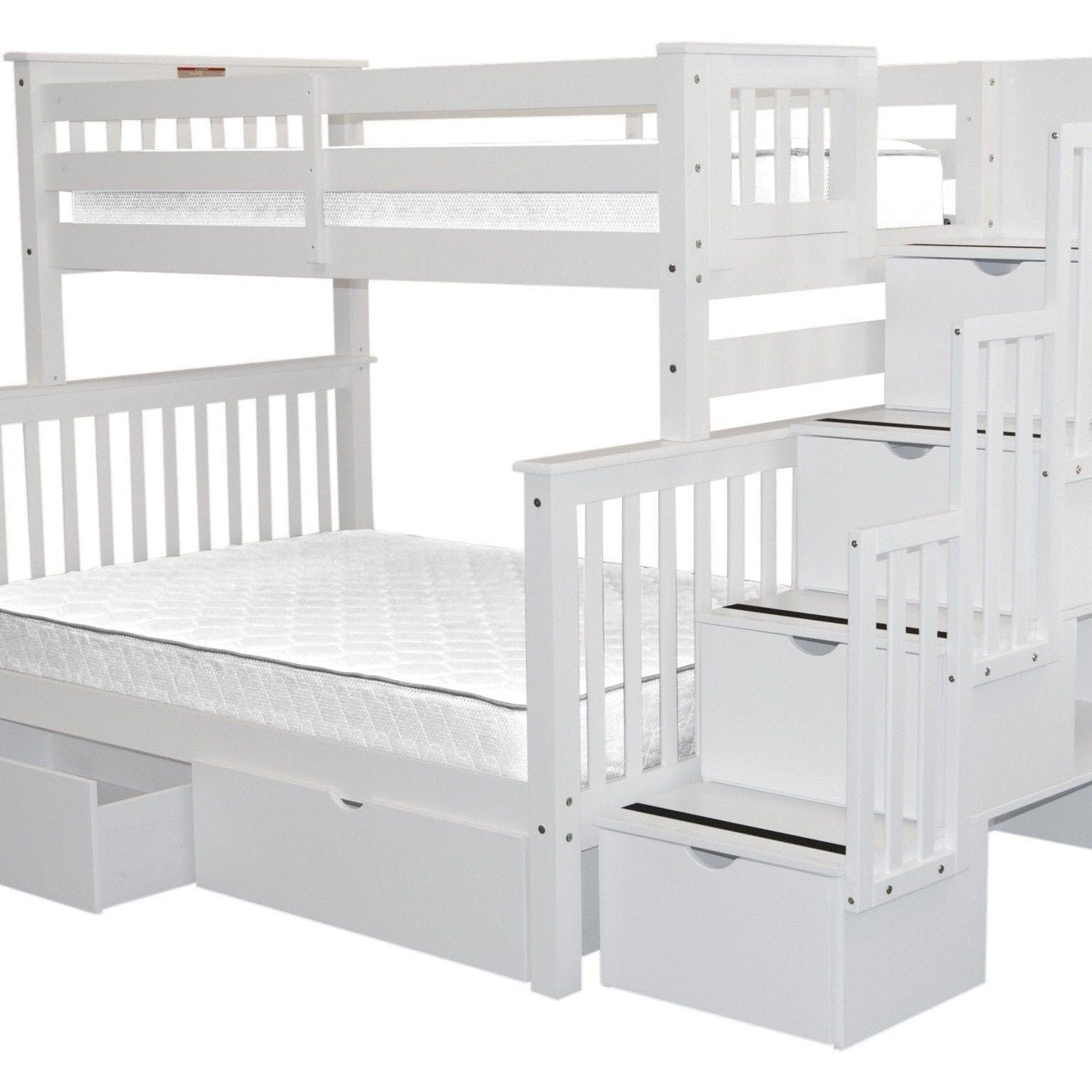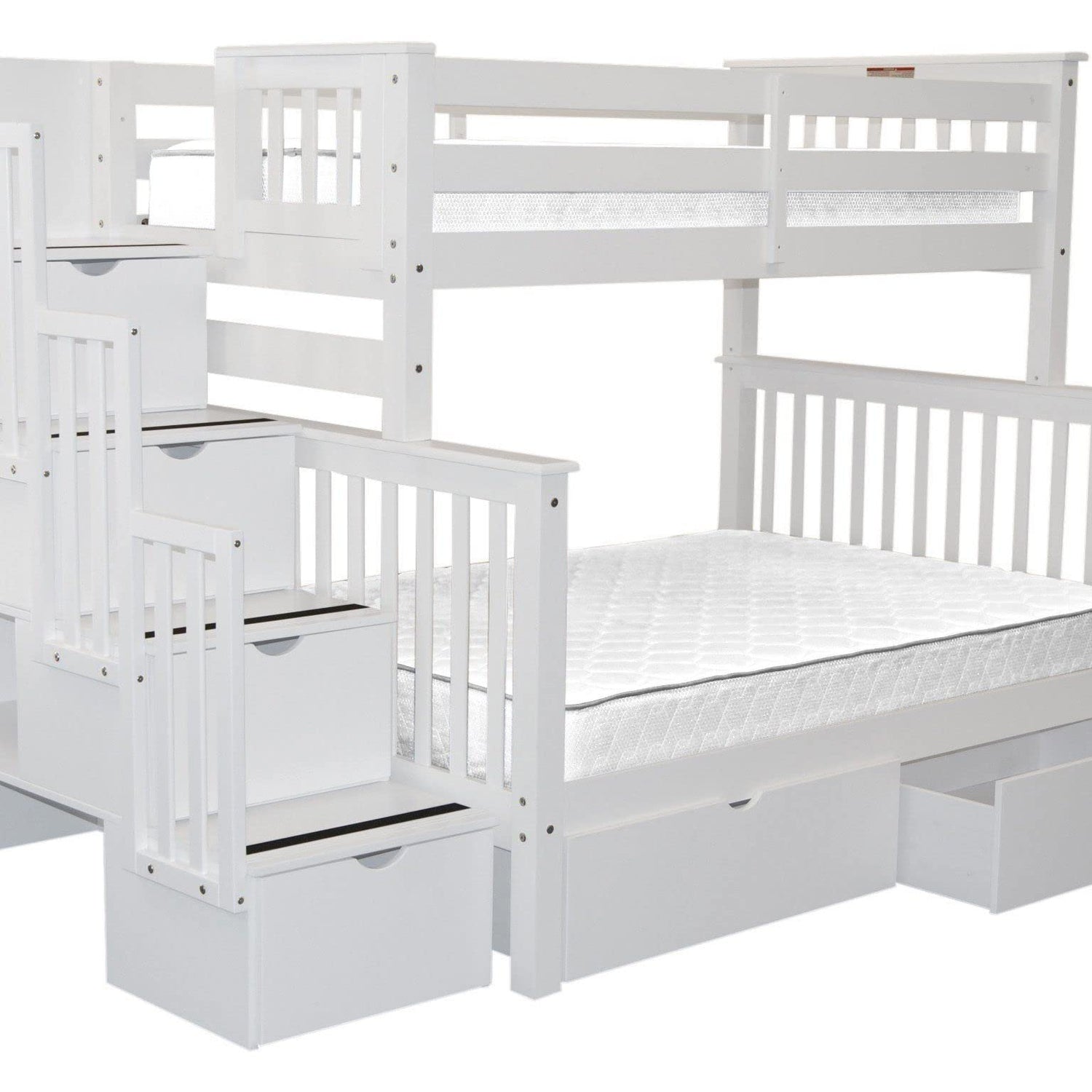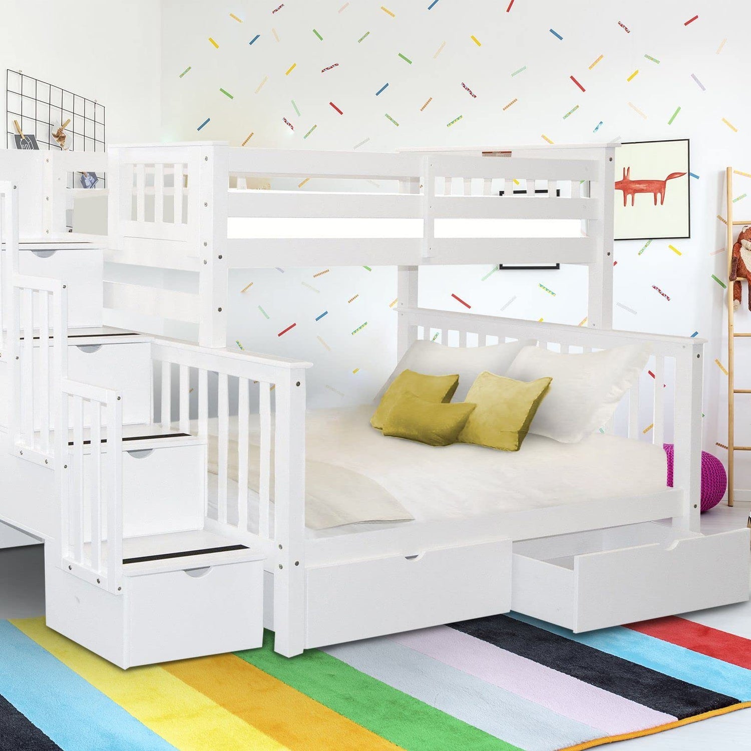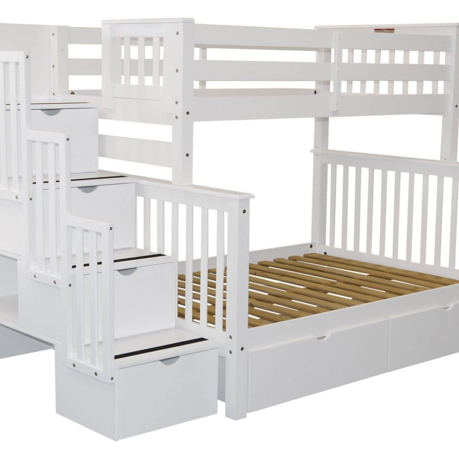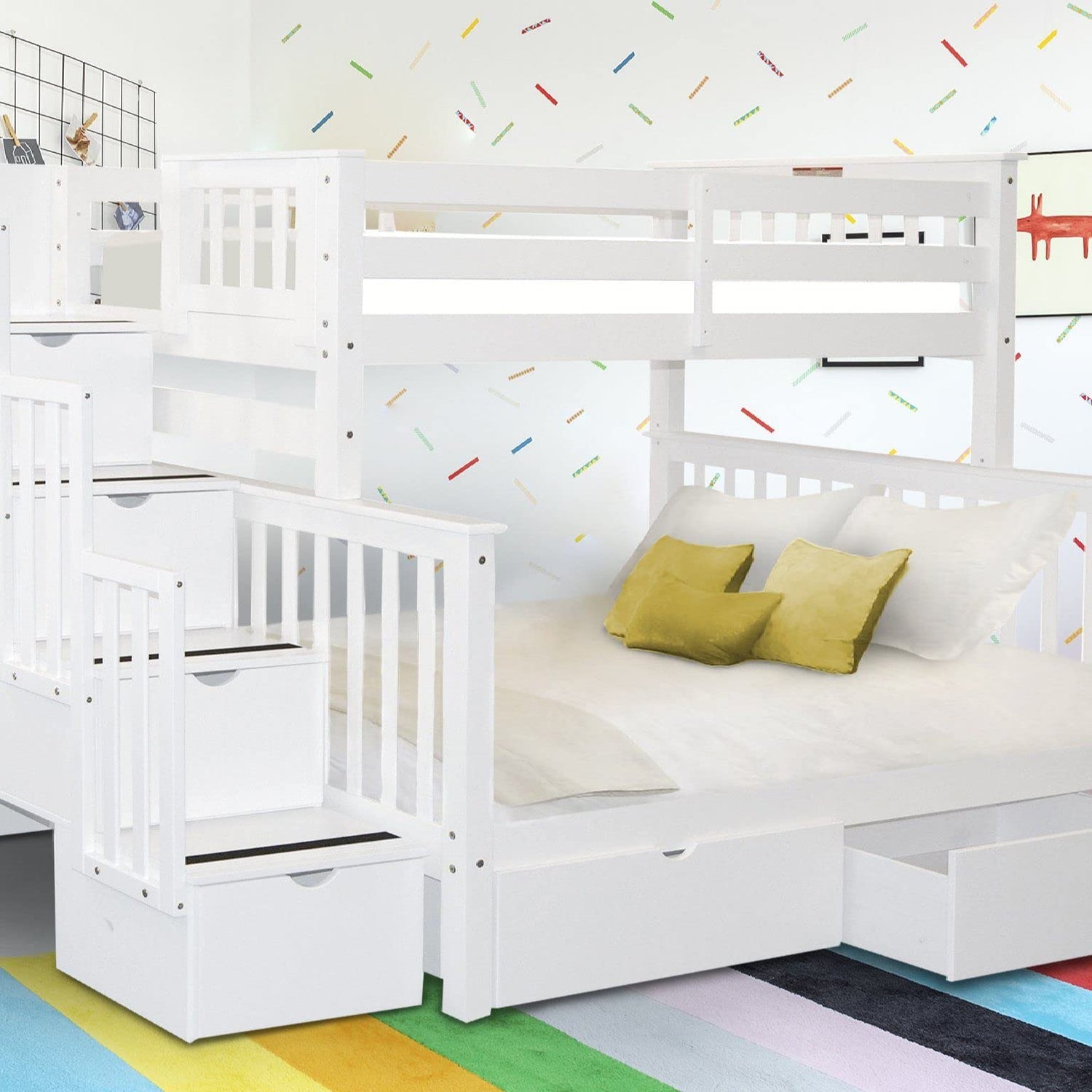 Bedz King Stairway Bunk Beds Twin over Full with 4 Drawers in the Steps and 2 Under Bed Drawers, White