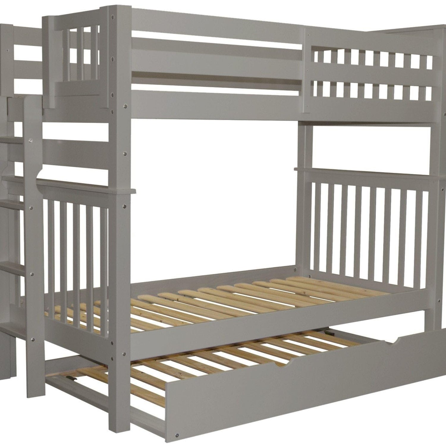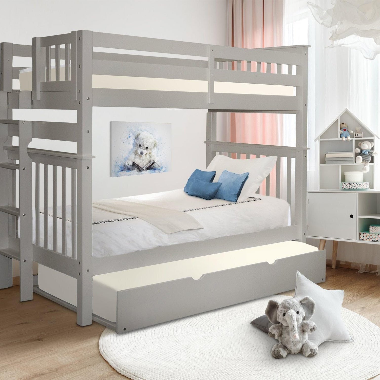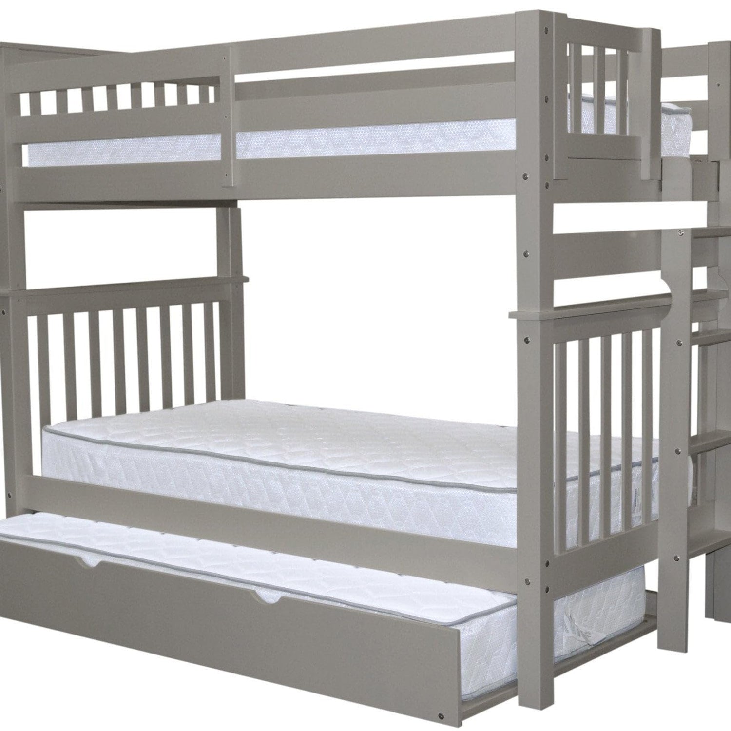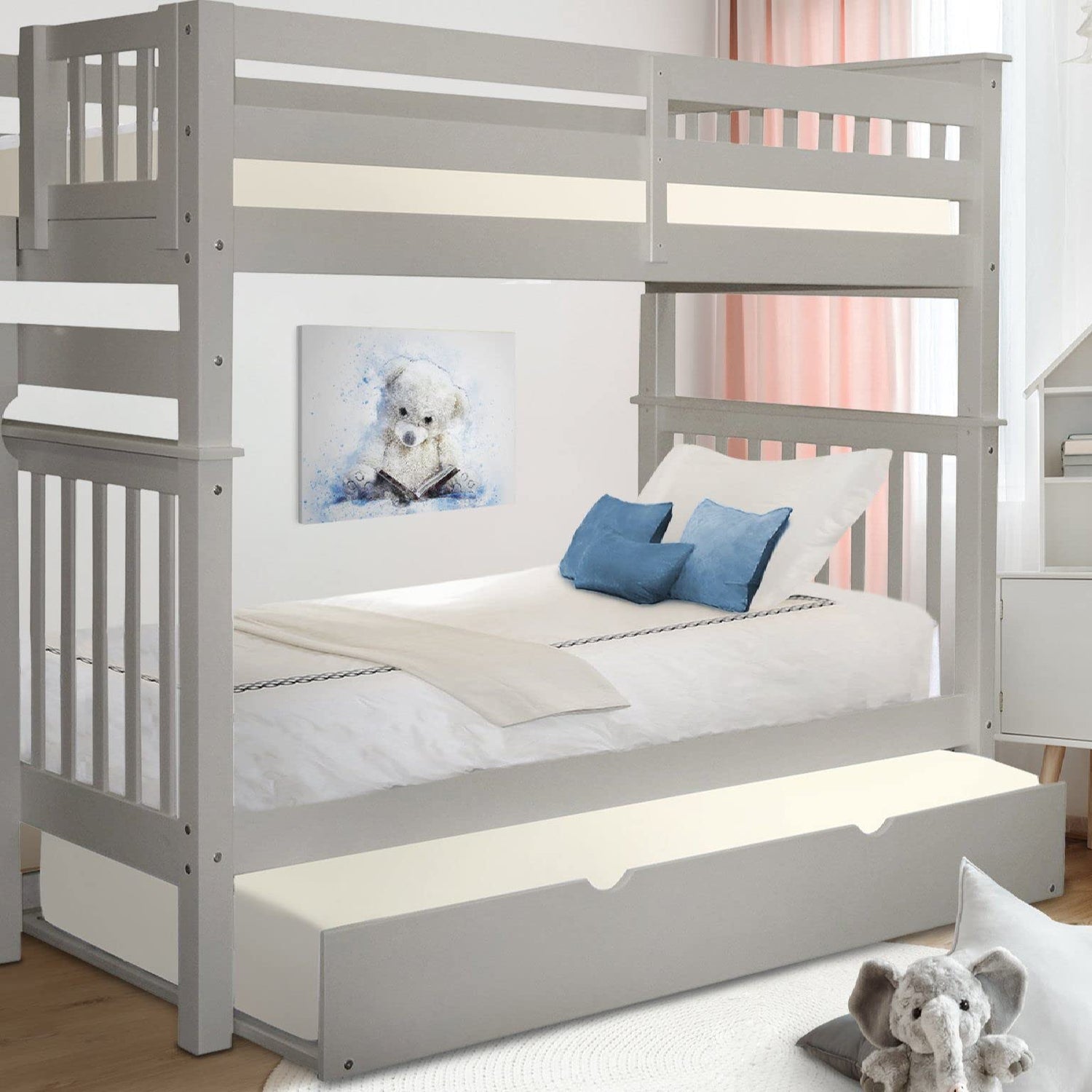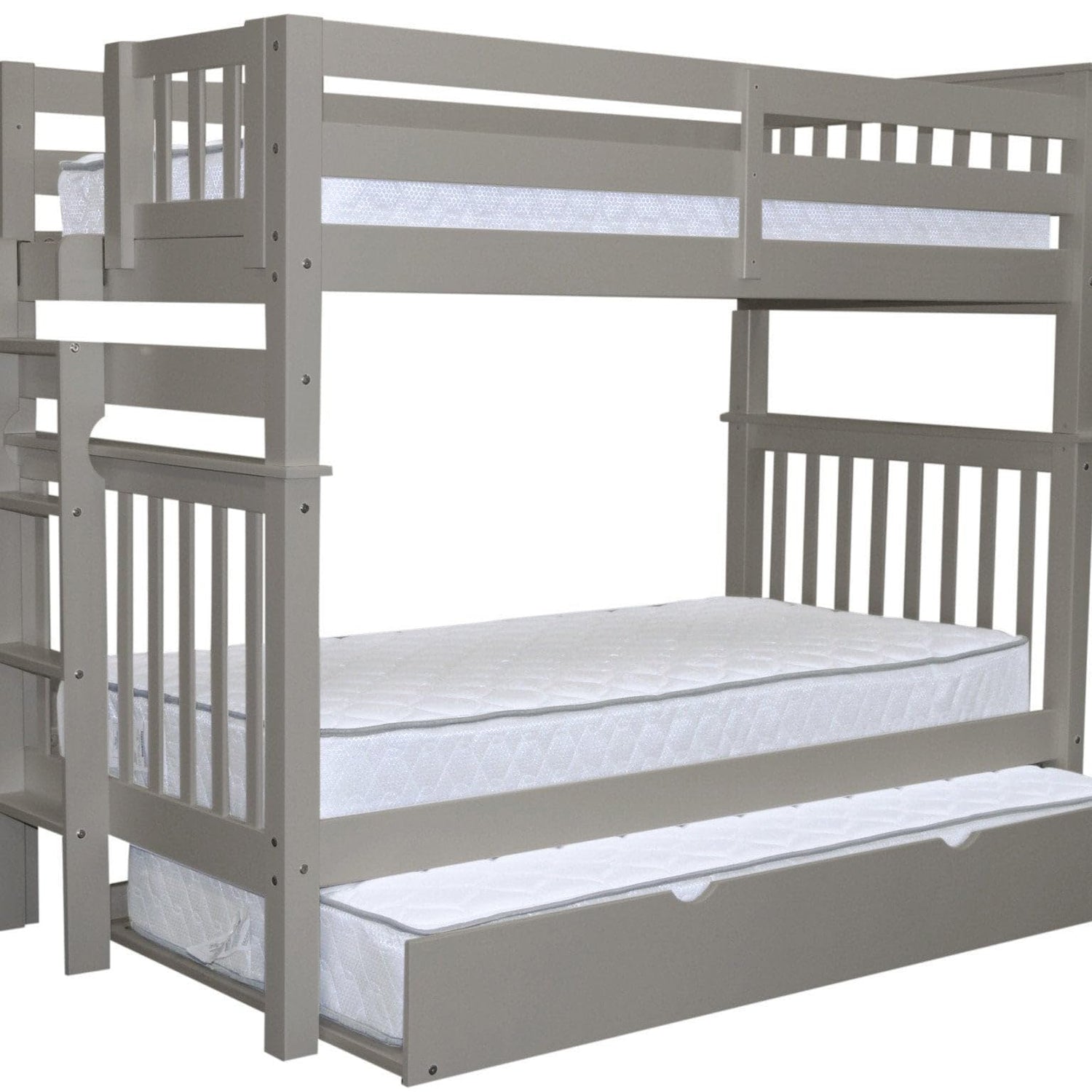 Bedz King Tall Bunk Beds Twin over Twin Mission Style with End Ladder and a Twin Trundle, Gray