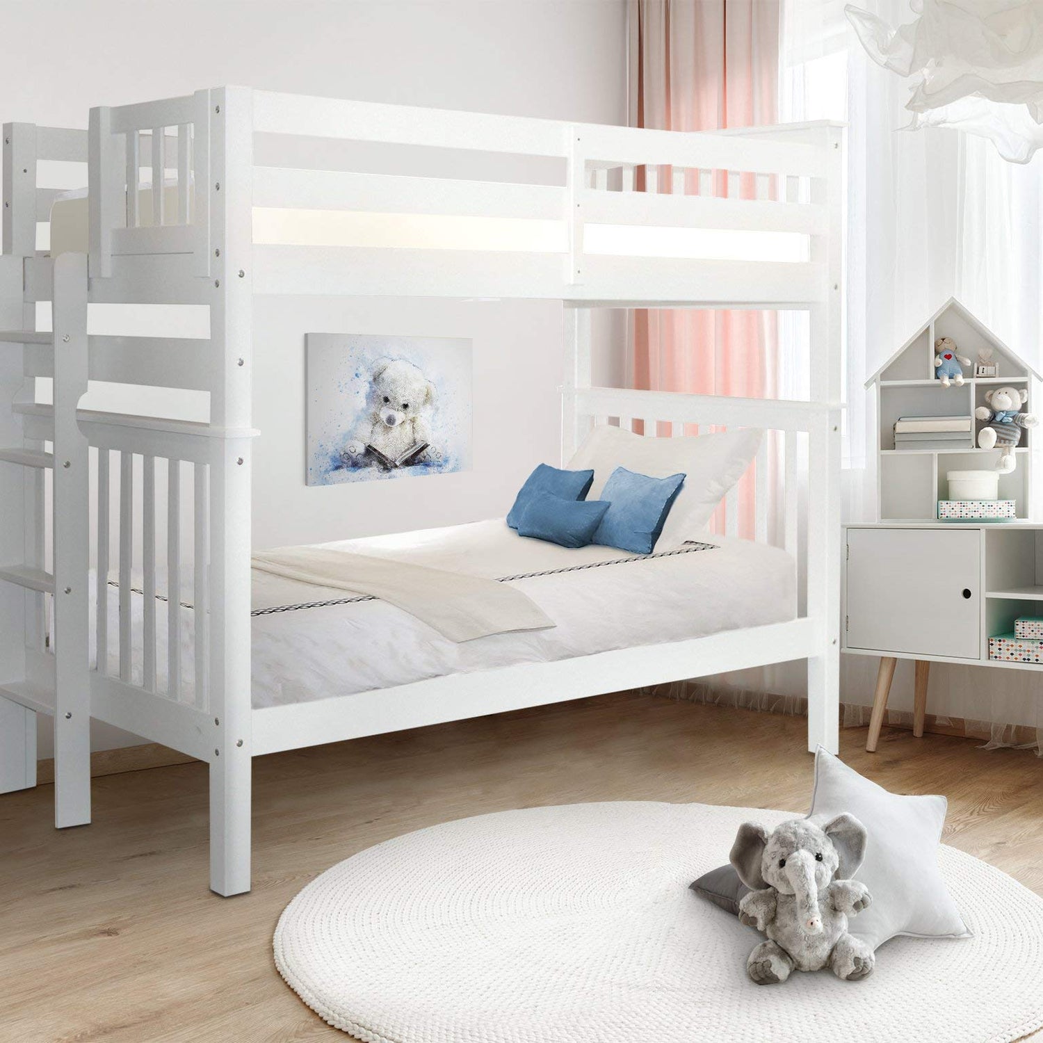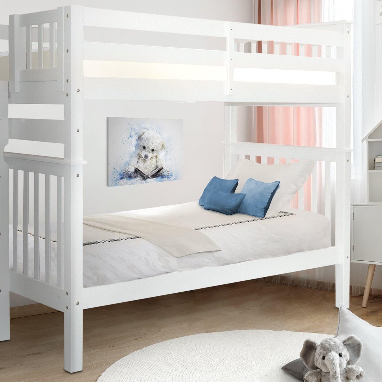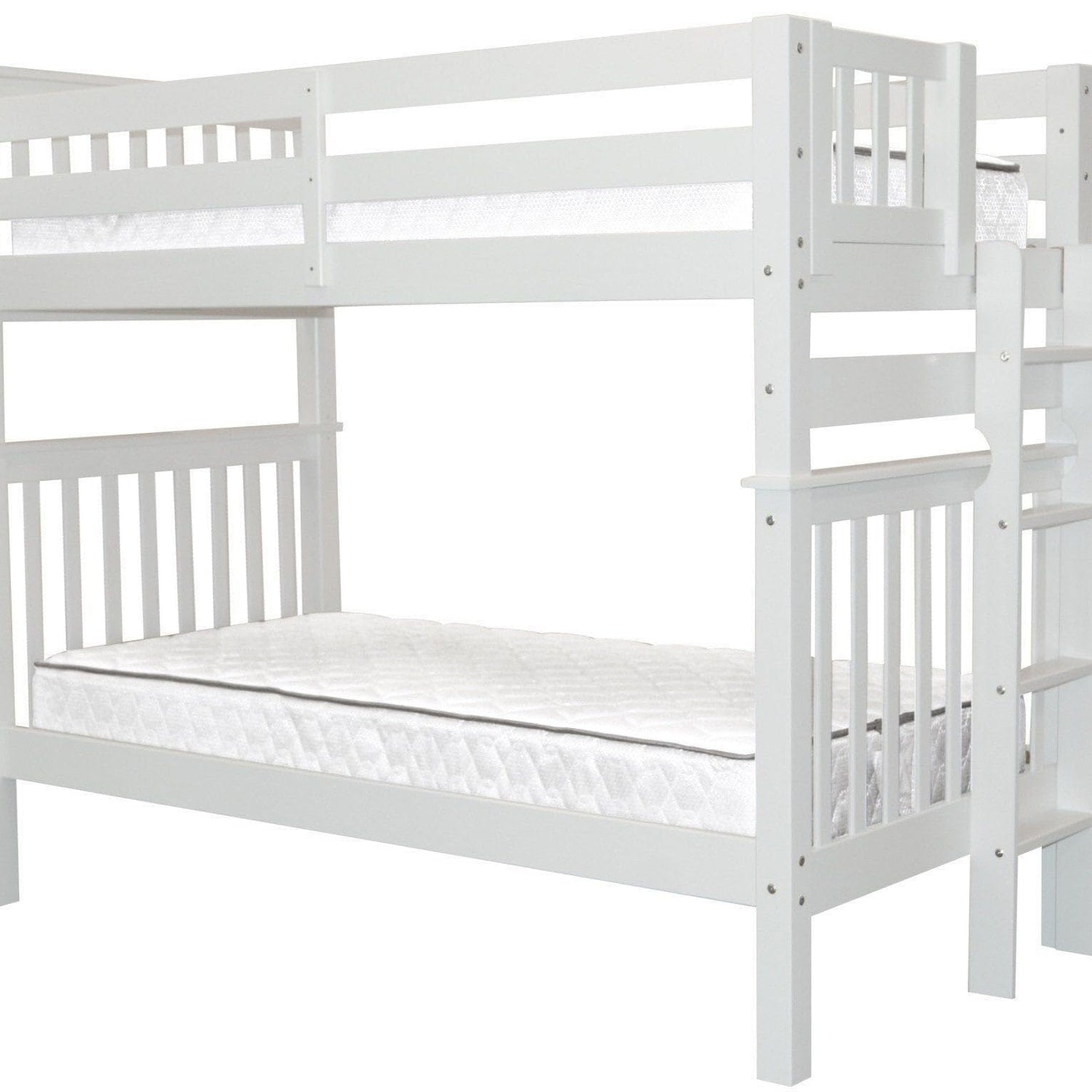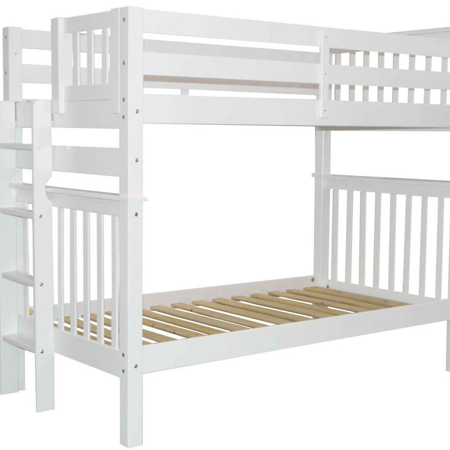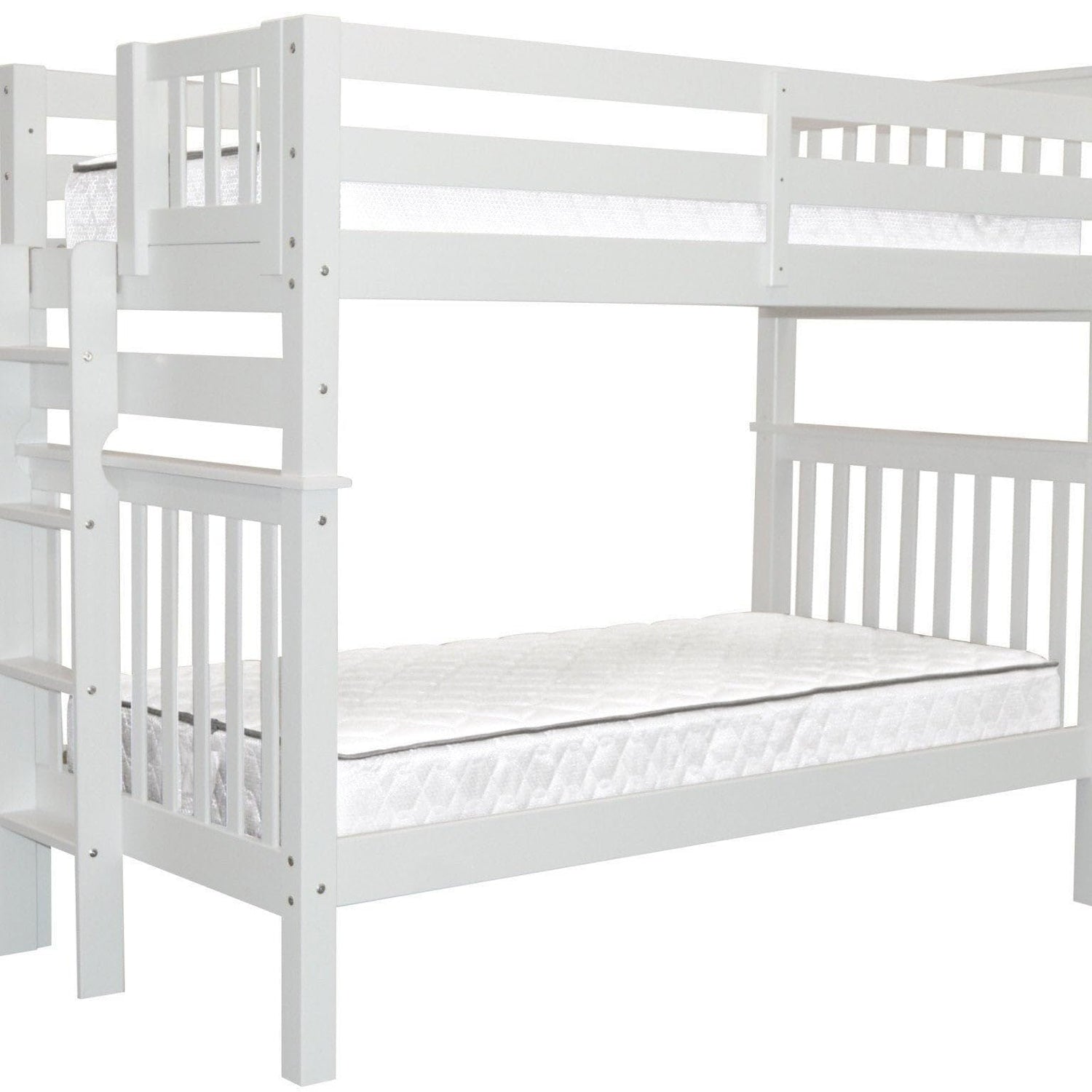 Bedz King Tall Bunk Beds Twin over Twin Mission Style with End Ladder, White