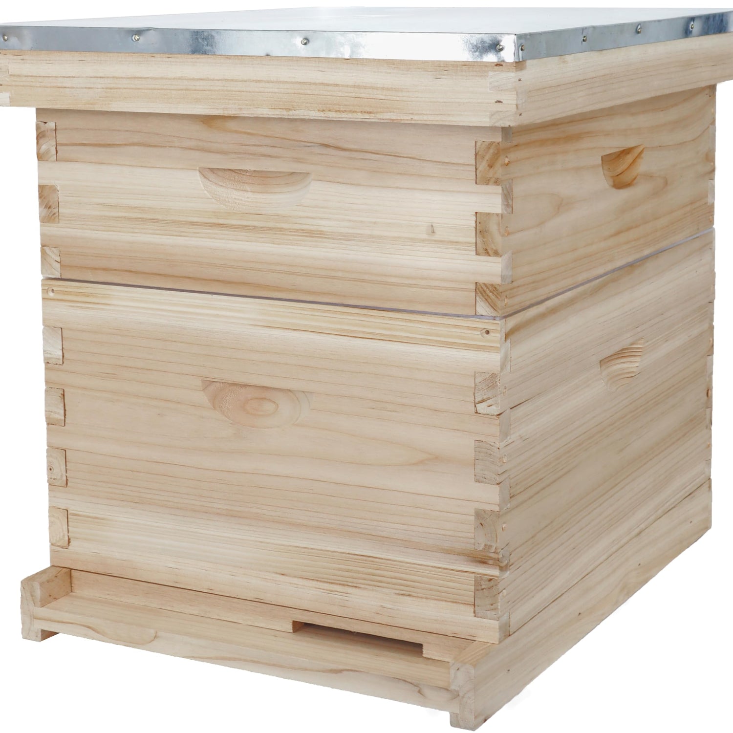 - 2-Layer Beehive: This bee hive kit includes 1 deep brood bee box and 1 medium honey super bee box. It's a complete beehive kit, including a wooden frame and beeswaxed foundation sheets. This is a standard beehive starter kit.