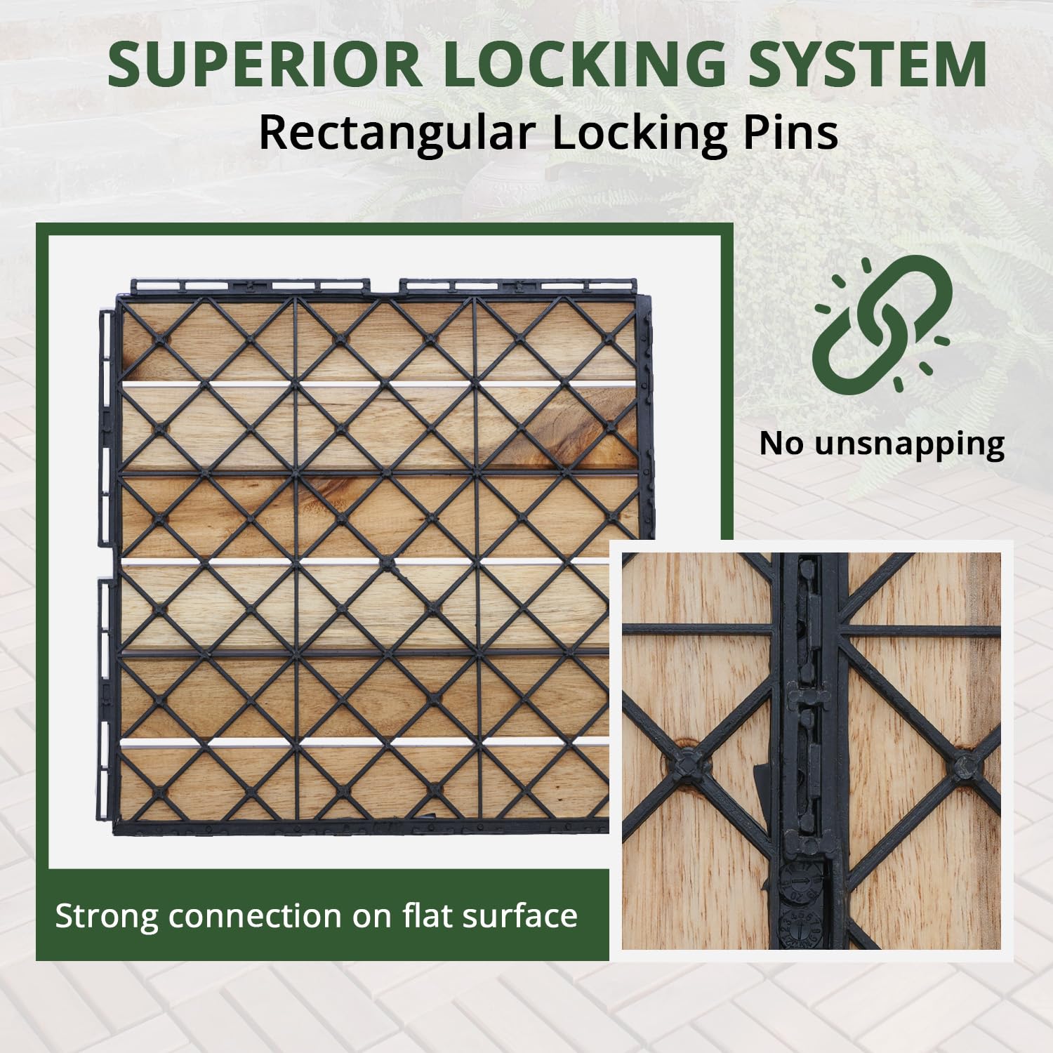 - π§οΈ [πππππ ππππ-πππππππ ππππππ]: Crafted from solid Acacia wood finished with water-based oil and PPC plastic base, our interlocking floor tiles are weather-resistant and water-resistant, ensuring durability for years to come.