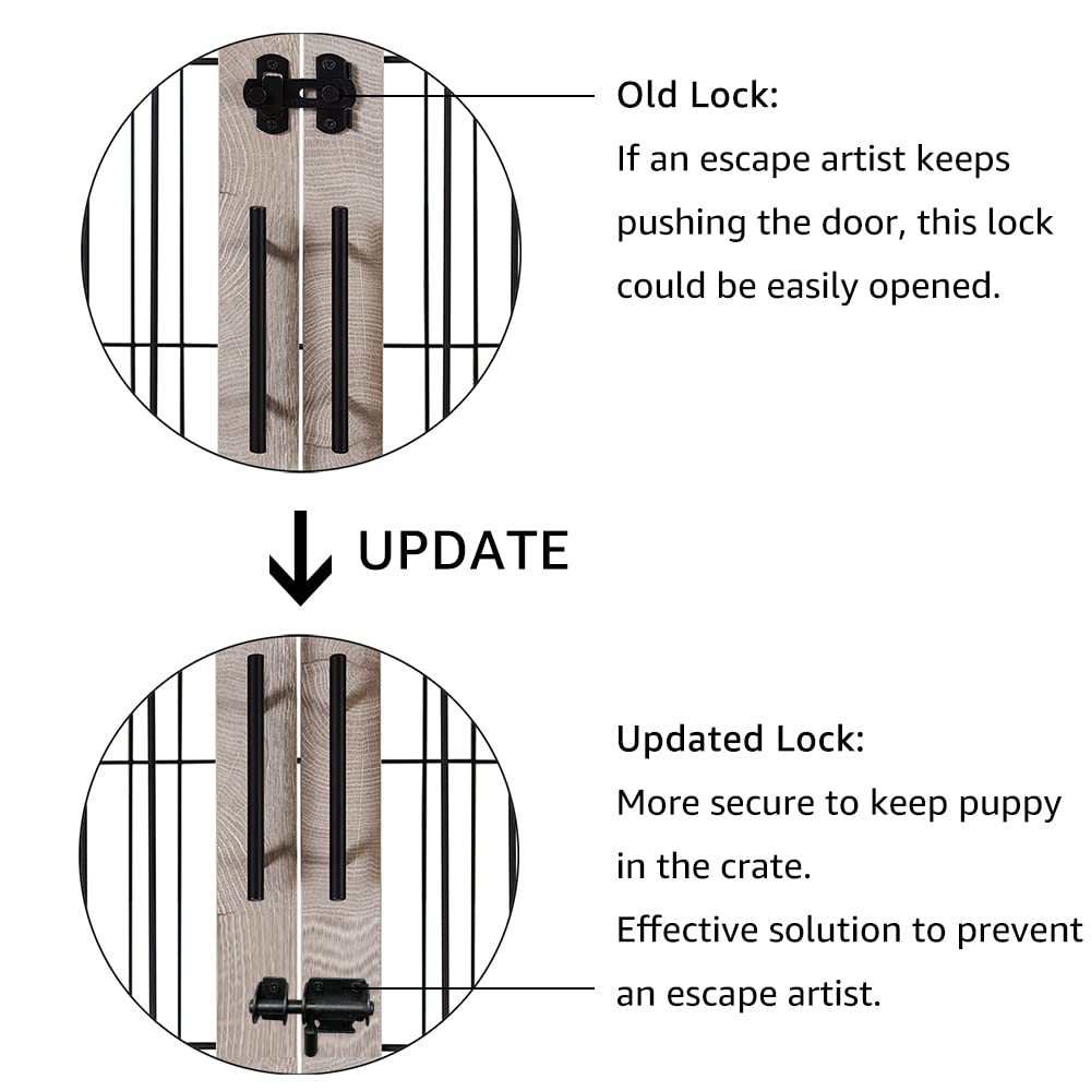 - DOUBLE DOORS DESIGN: Easy accessibility allows it more convenient for dogs to go in and out. The versatile side door can be installed on either end of this dog crate. Equipped with latches, spring locks and magnetic locks to ensure safety.