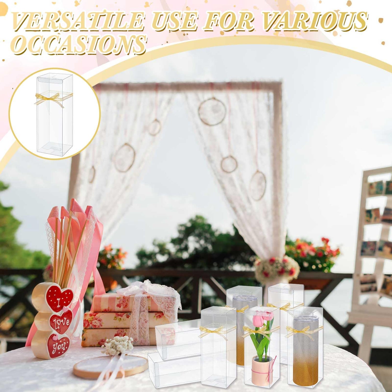 - Versatile Use for Various Occasions: these clear gift boxes are an appropriate fit for various occasions such as Halloween, Christmas, Valentine's Day, Thanksgiving, Weddings and more; You can comfortably use them for gift packaging mugs, desserts, depending on your choice of gifts