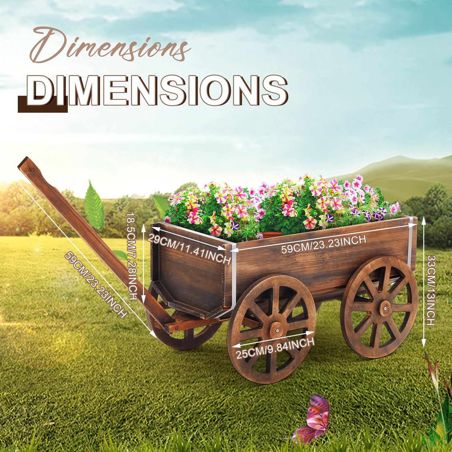 - Materials for Longevity: constructed from solid pine, a weather resistant material, this wood wheel barrow for flower pots ensures longevity; The sustainable material and paint burning process applied in its construction ensure it withstands harsh outdoor conditions