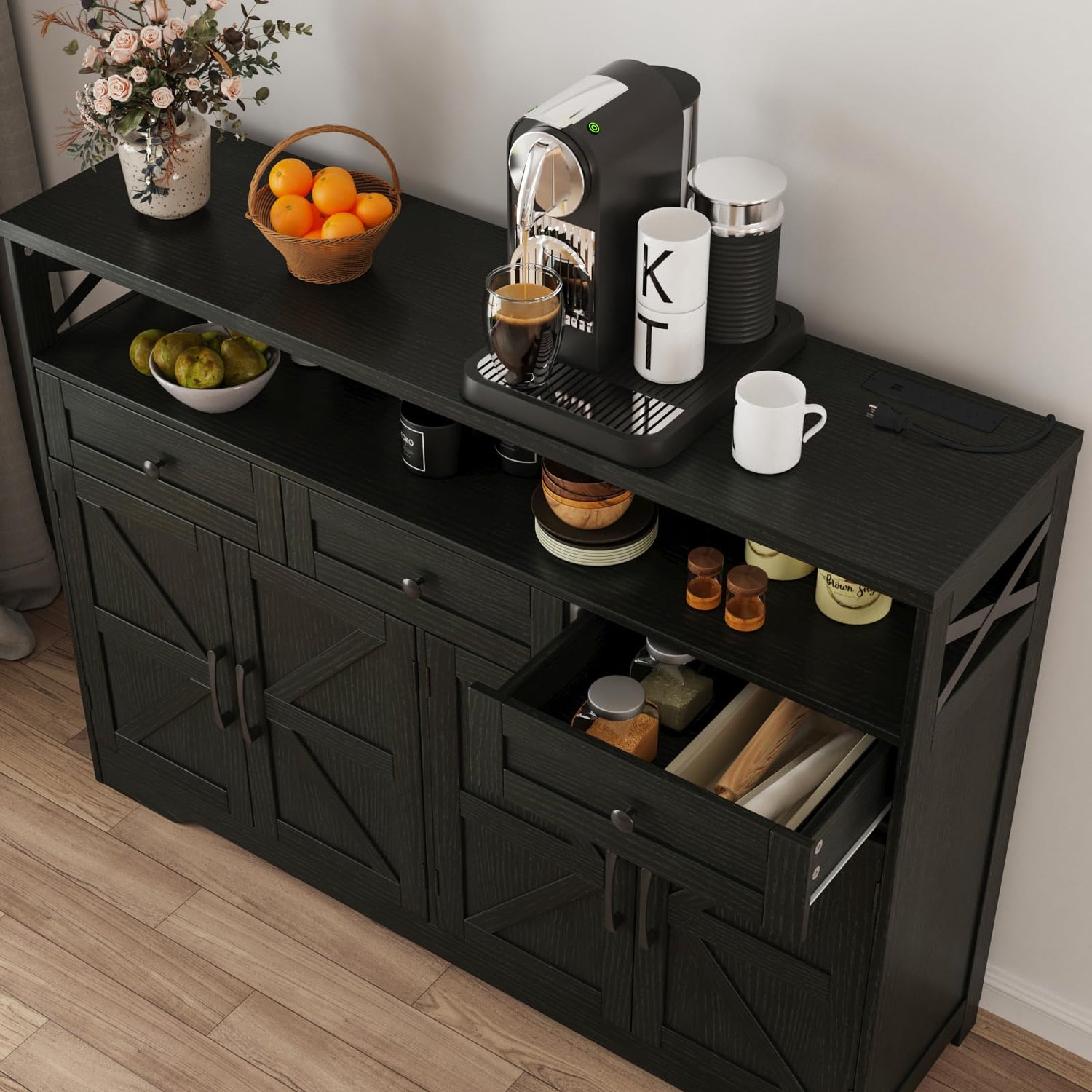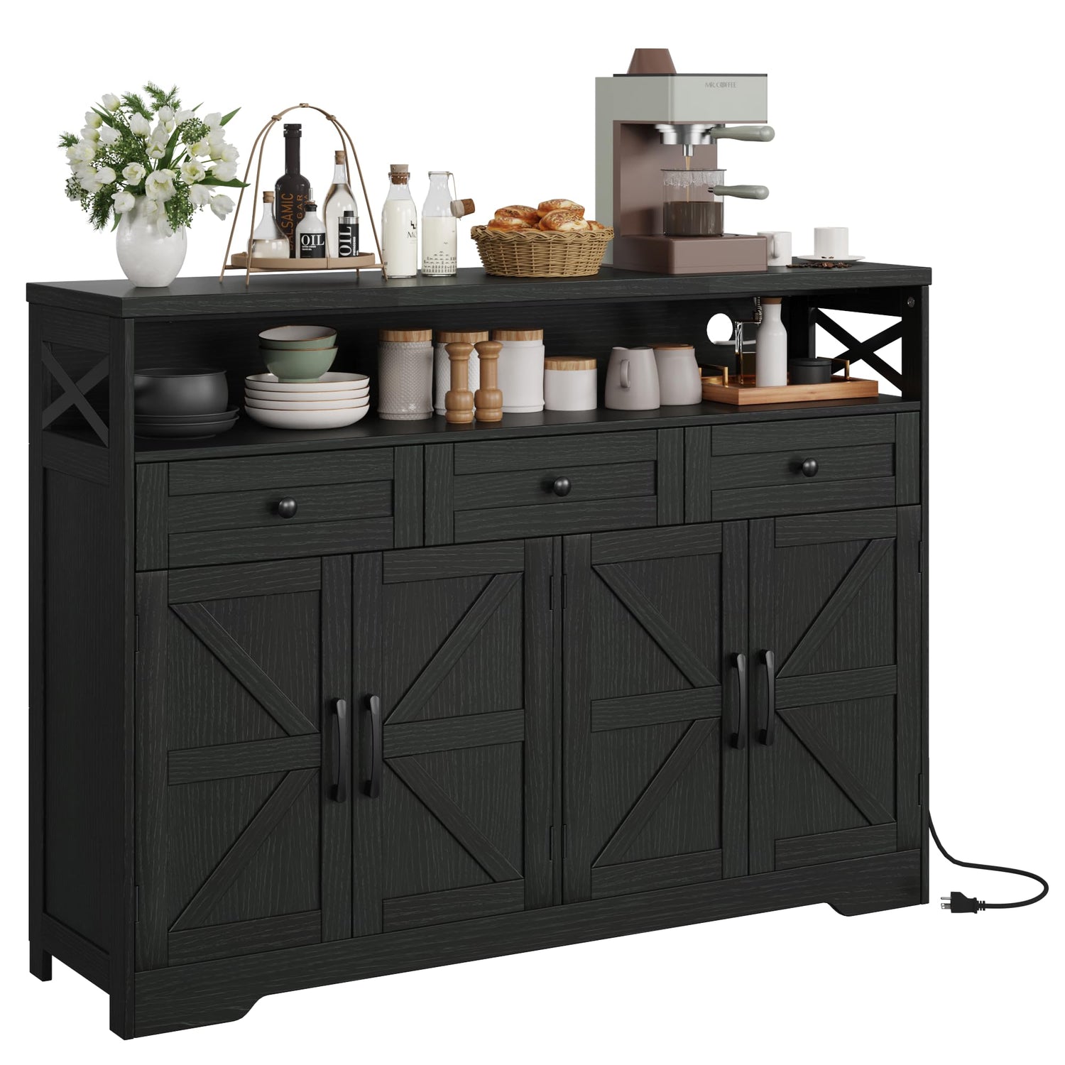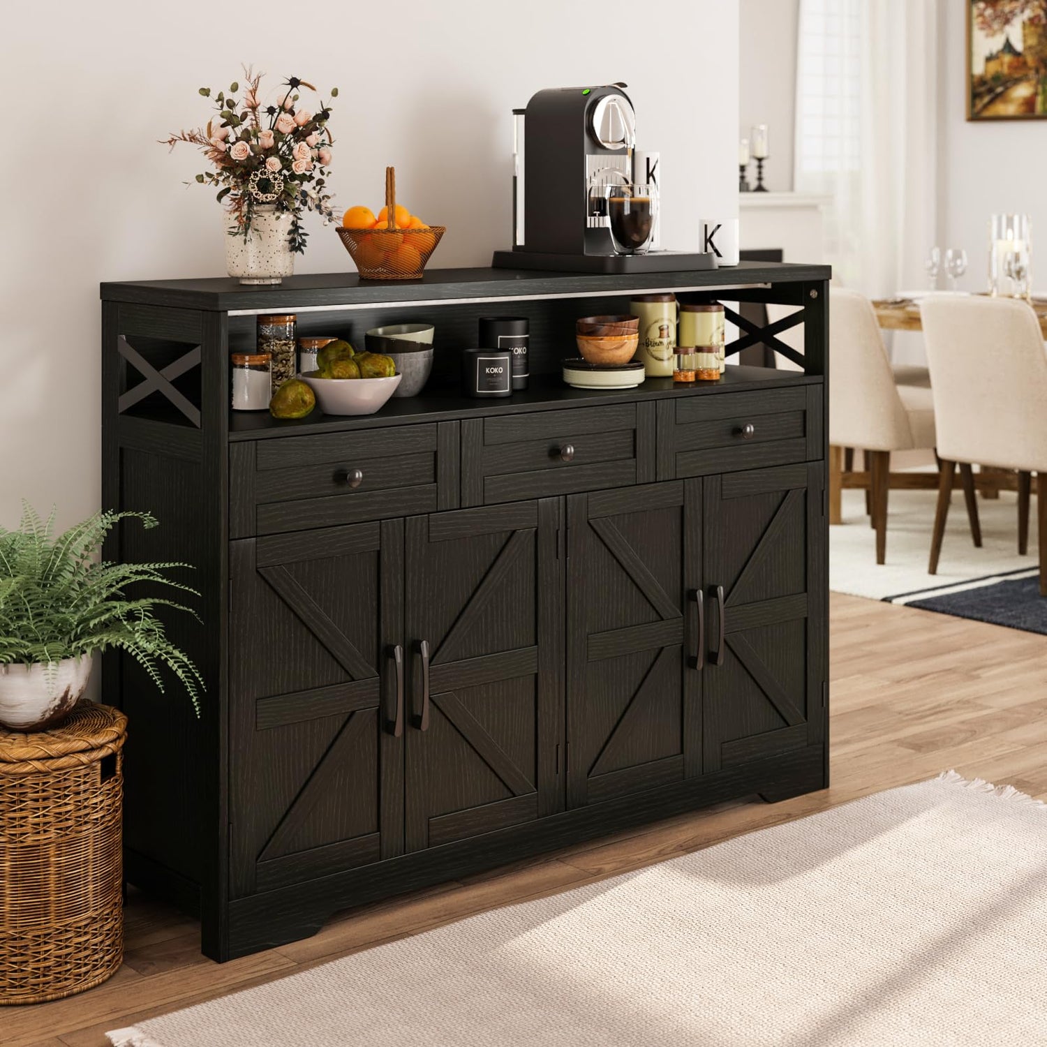 Befrases 51" L Modern Farmhouse Sideboard Buffet Cabinet, Black Storage Cabinet with Drawers & Shelves, Kitchen Pantry Hutch Cabinet, Coffee Bar Station Table for Living Room, Dining Room, Entryway