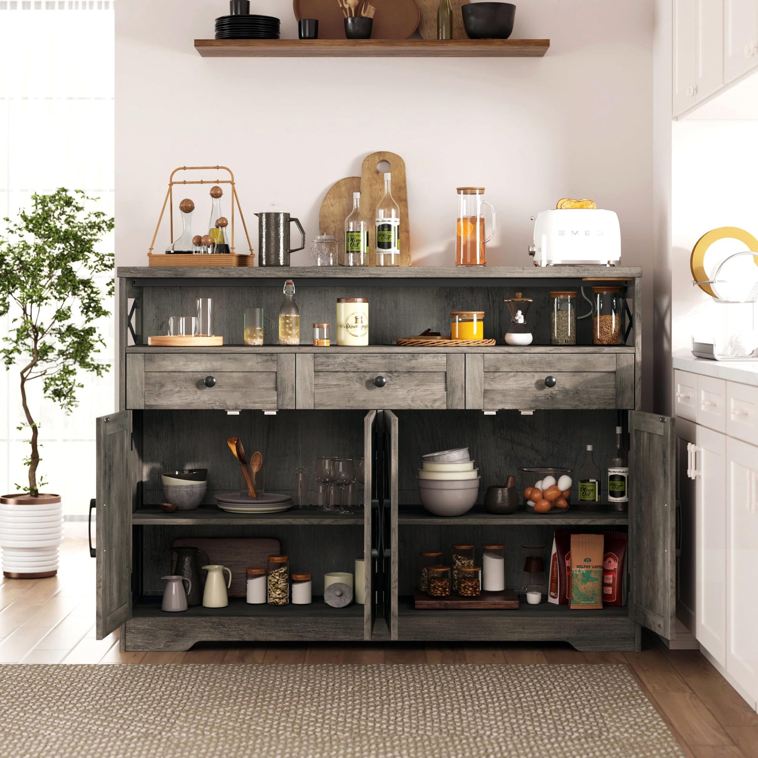 Befrases Farmhouse Buffet Cabinet with Drawers, Sideboard with Storage, Kitchen Pantry Cabinet Hutch, Wood Coffee Bar Station Cabinet for Kitchen, Dining Room, Livingroom, 52" L Rustic Grey