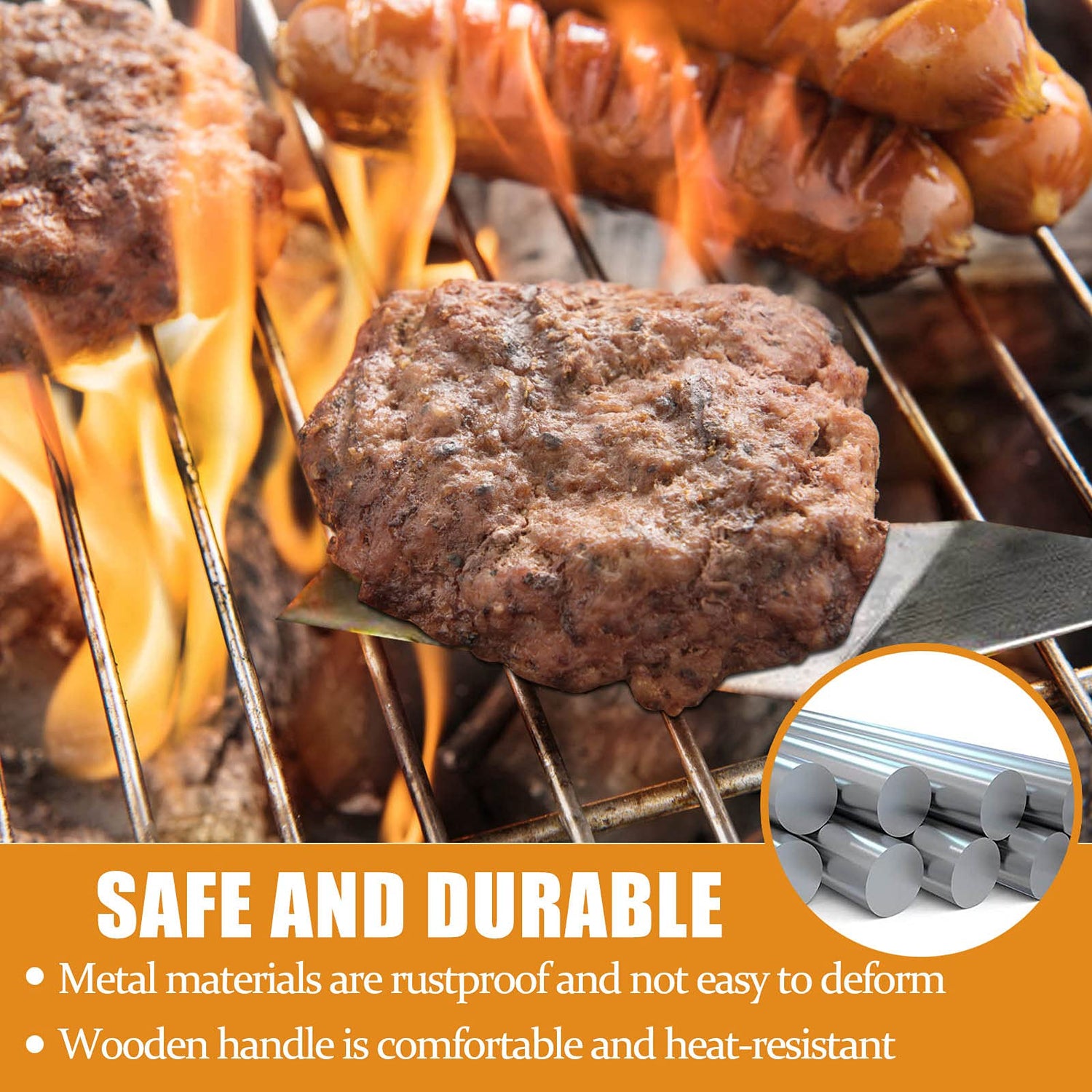 - Reinforced Handle: The wooden handle provides a comfortable grip and insulation from heat. Double rivets making it extra sturdy