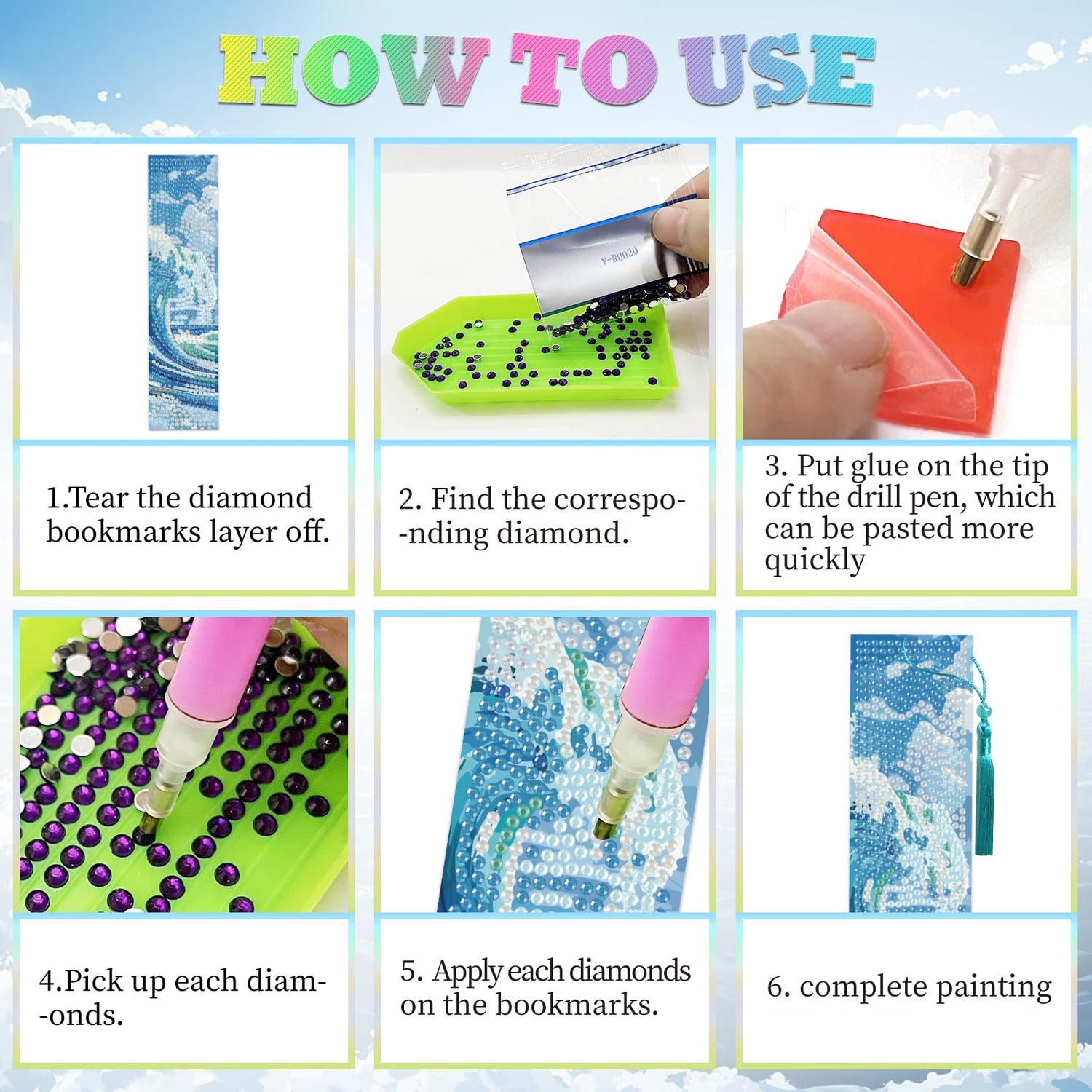 - Easy to Operate: Everyone can easily create their own artwork using diamond DIY accessories, just attach the gems according to the colour of the bookmark, and you'll get a beautiful sparkling diamond bookmark for decorating your books or notes