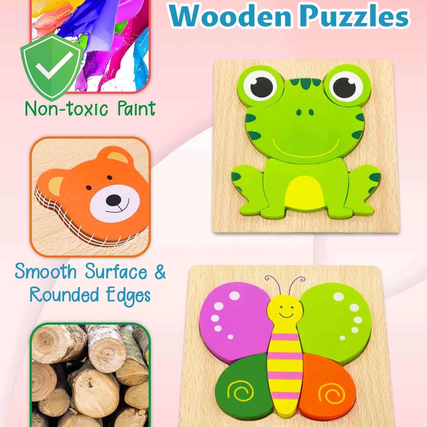 - Safety and High Quality: These animal wooden puzzles are made of high-quality environmental wood; The edges of wooden puzzles are smooth and won't hurt the kid's delicate skin, so toddler puzzle will be perfect toddler toys for 1 2 3 year old boys and girls