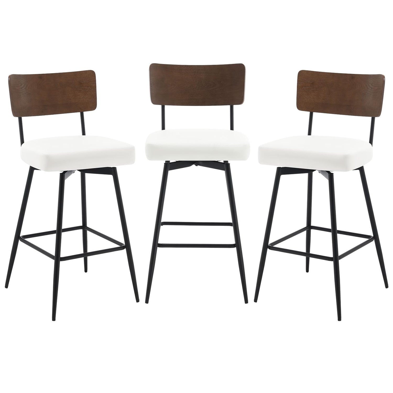 Bekrvio Counter Height Swivel Bar Stools Set of 3, Upholstered Faux Leather Barstools with Wood Backs and Metal Legs, 26" Seat Height Counter Bar Stool for Kitchen Island, White