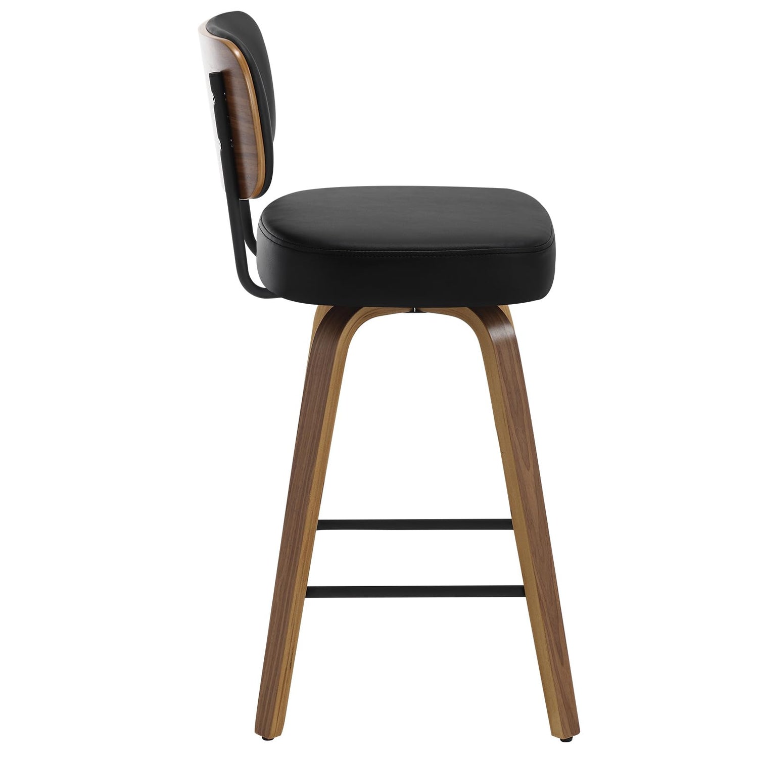 Bekrvio 26" Swivel Faux Leather Bar Stools Set of 4 with Ergonomic Backrest and Walnut Bent Wood Legs