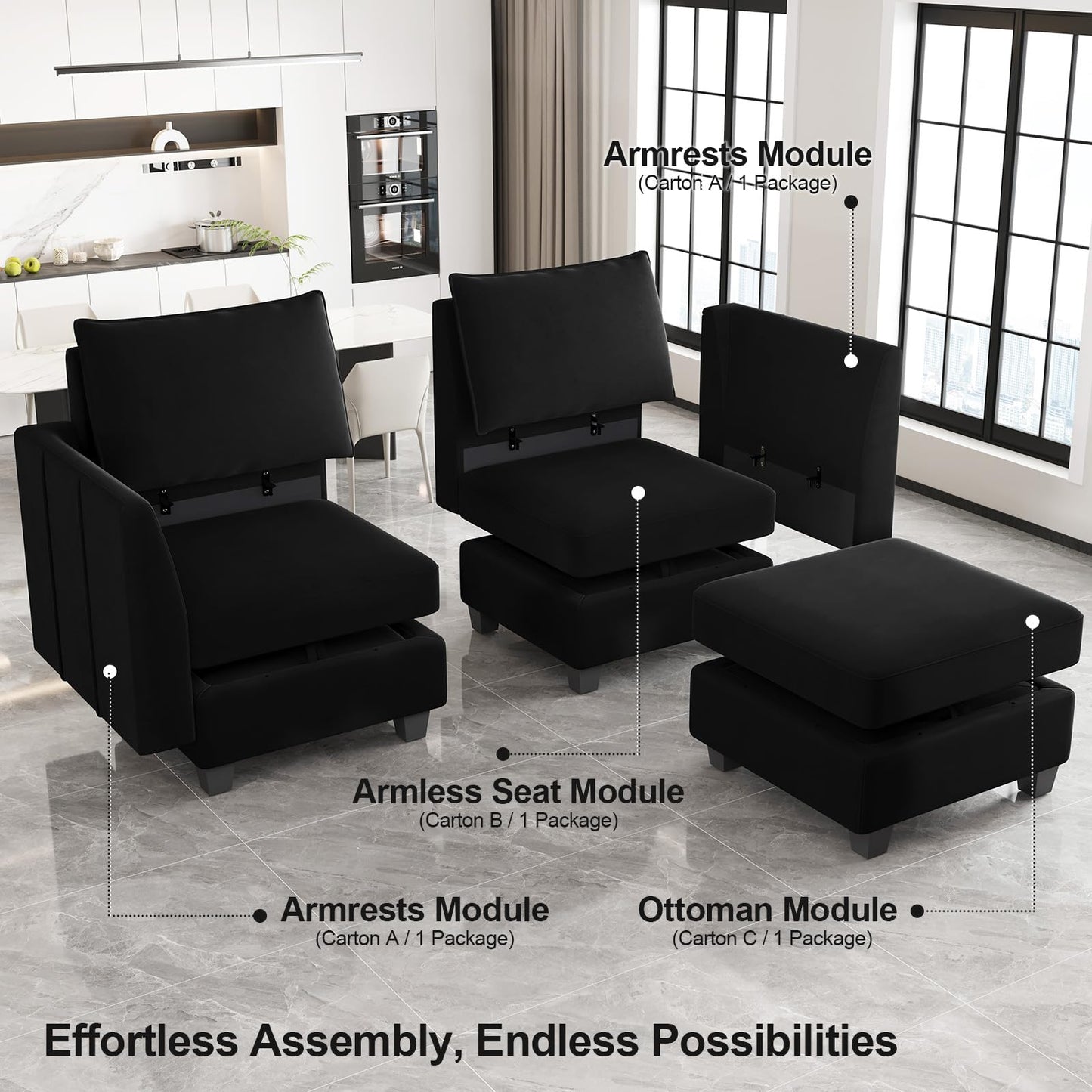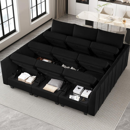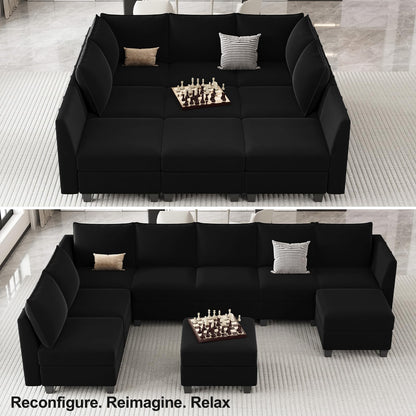 Belffin Large Modular Sectional Sofa Sleeper Sectional Couch with Storage Velvet Sectional Sofa Bed for Living Room, 9 Seats, Black