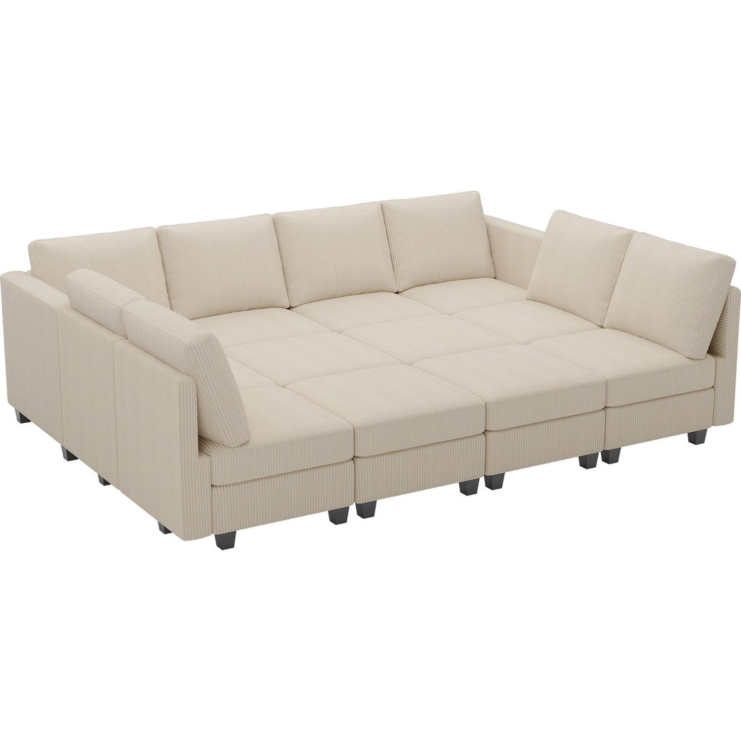 Belffin Oversized 12 Seat Modular Sectional Sleeper Sofa Convertible Sleeper Sofa with Storage Seat Large Corduroy Modular Sectional Couch for Living Room Beige