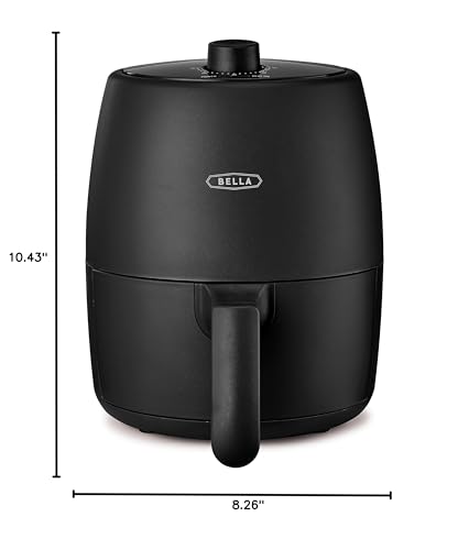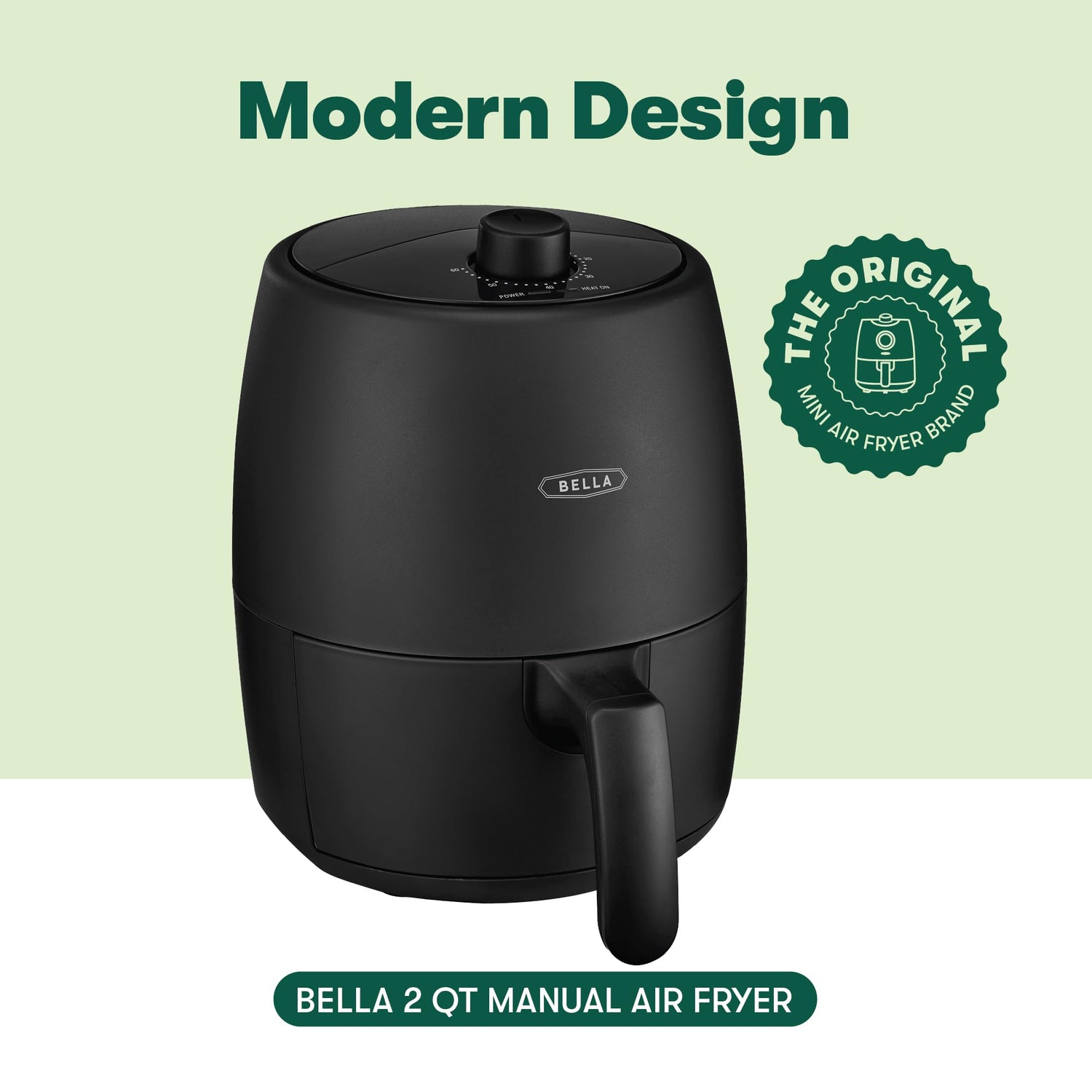 BELLA 2 qt Manual Air Fryer Oven and 5-in-1 Multicooker with Removable Nonstick and Dishwasher Safe Crisping Tray and Basket, 1200 Watt Heating System, Matte Black