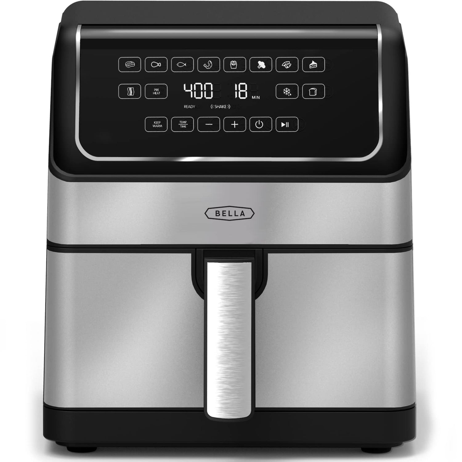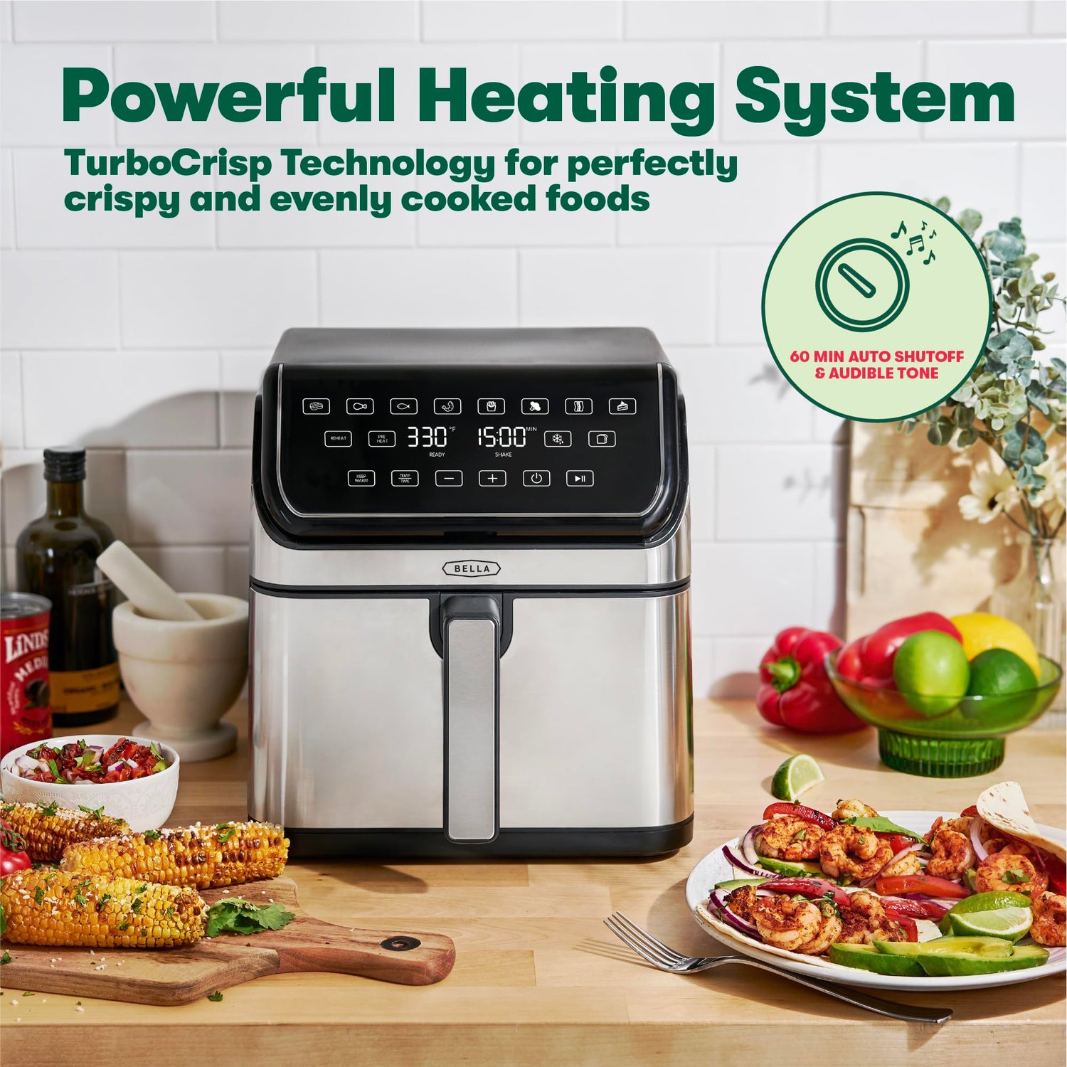 bella 8 Qt Digital Air Fryer with TurboCrisp Technology, Large Family Size Nonstick Cooking Basket and Crisping Tray, Multiple Preset Functions, Auto Shutoff, Stainless Steel, 1750 Watt