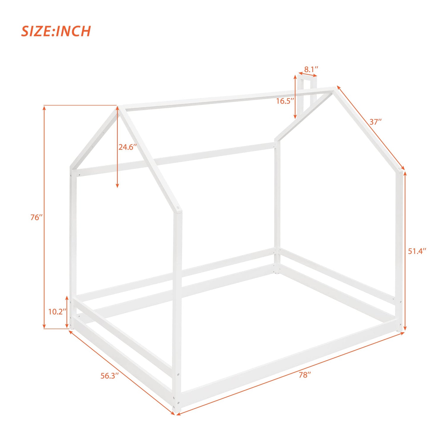 Bellemave Montessori Full House Bed Frame for Toddlers - White Wooden Floor Bed for Kids