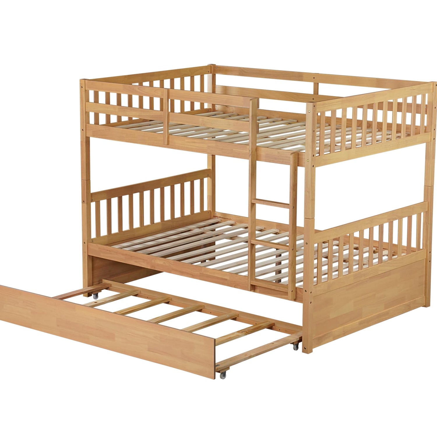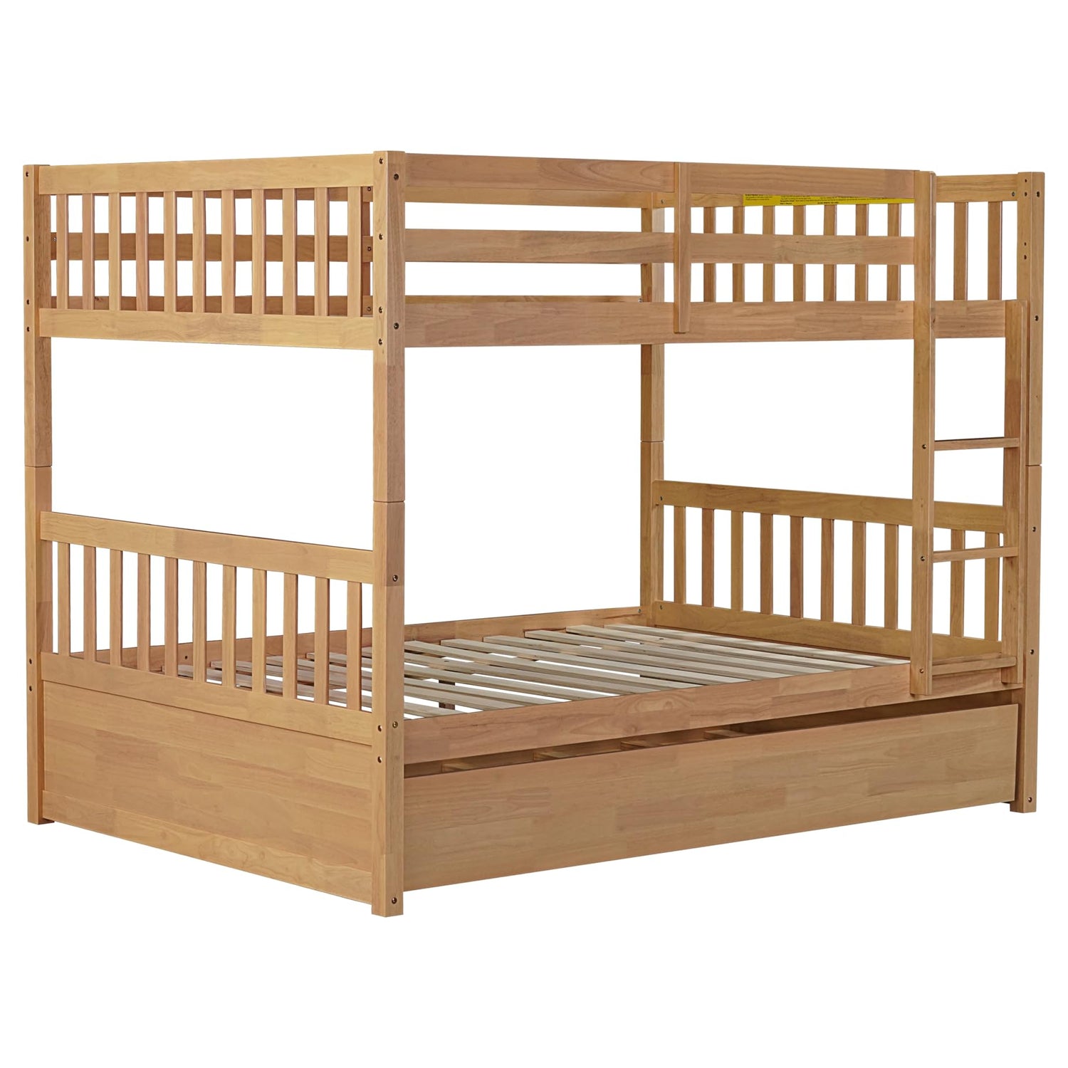- đ„ăSturdy Bunk Bed for KidsăThis full size bunk beds with trundle is crafted from quality rubber wood, plus the 13-slat platform beds providing lasting sturdiness and durability.