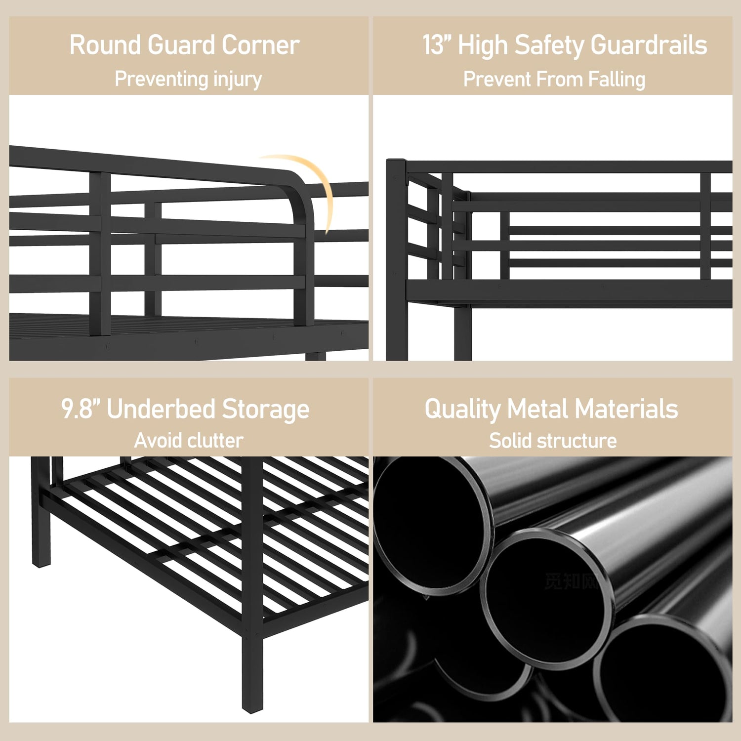 - 💯【Safety-First Design】The upper full bunk bed includes full-length guardrails and 20 reinforced metal slats for stability. Thicker legs on the lower bed enhance durability, while the no-box-spring design ensures hassle-free mattress placement