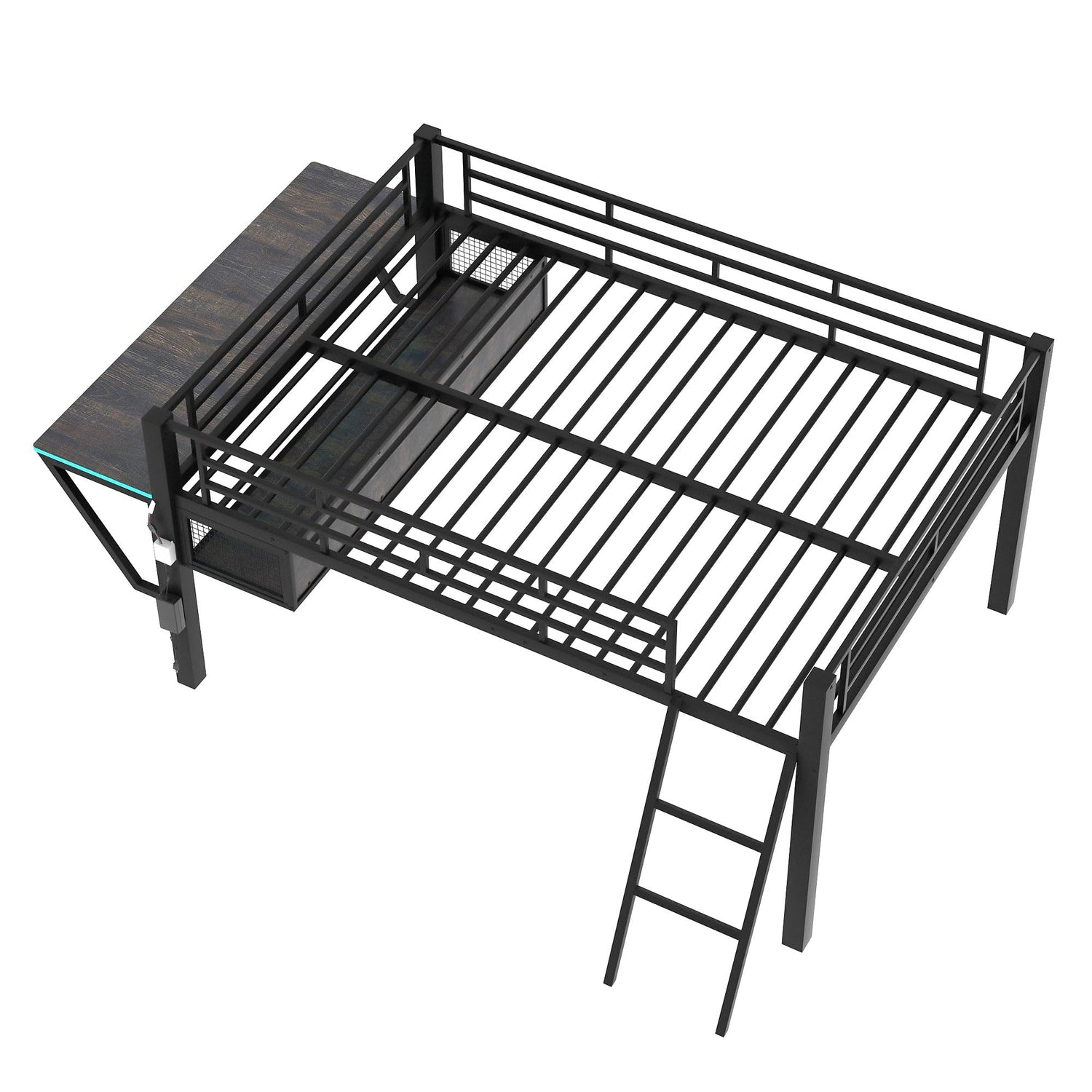 Introducing the Bellemave Black Full Size Loft Bed with Integrated Gaming Desk and LED Lighting — the ultimate solution for transforming your child's bedroom into a dynamic space for gaming and studying. Designed with the modern gamer in mind, this loft bed elegantly combines functionality and style, making it the perfect addition to any room.
