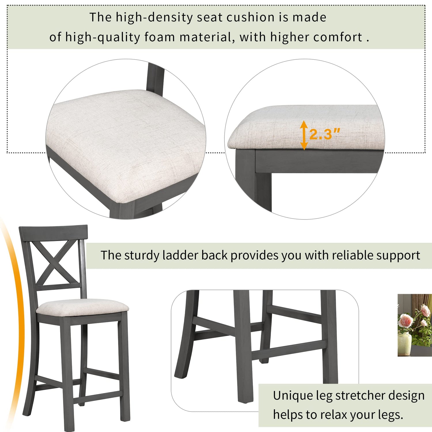 - [Elegant Dining Table Set] - The 6-piece counter height dining set consists of a table, four chairs and a bench. The multifunctional table is designed to fit in any space, and its classic, elegant design creates timeless appeal. Perfect to gather around, this essential table complements any room Decor.