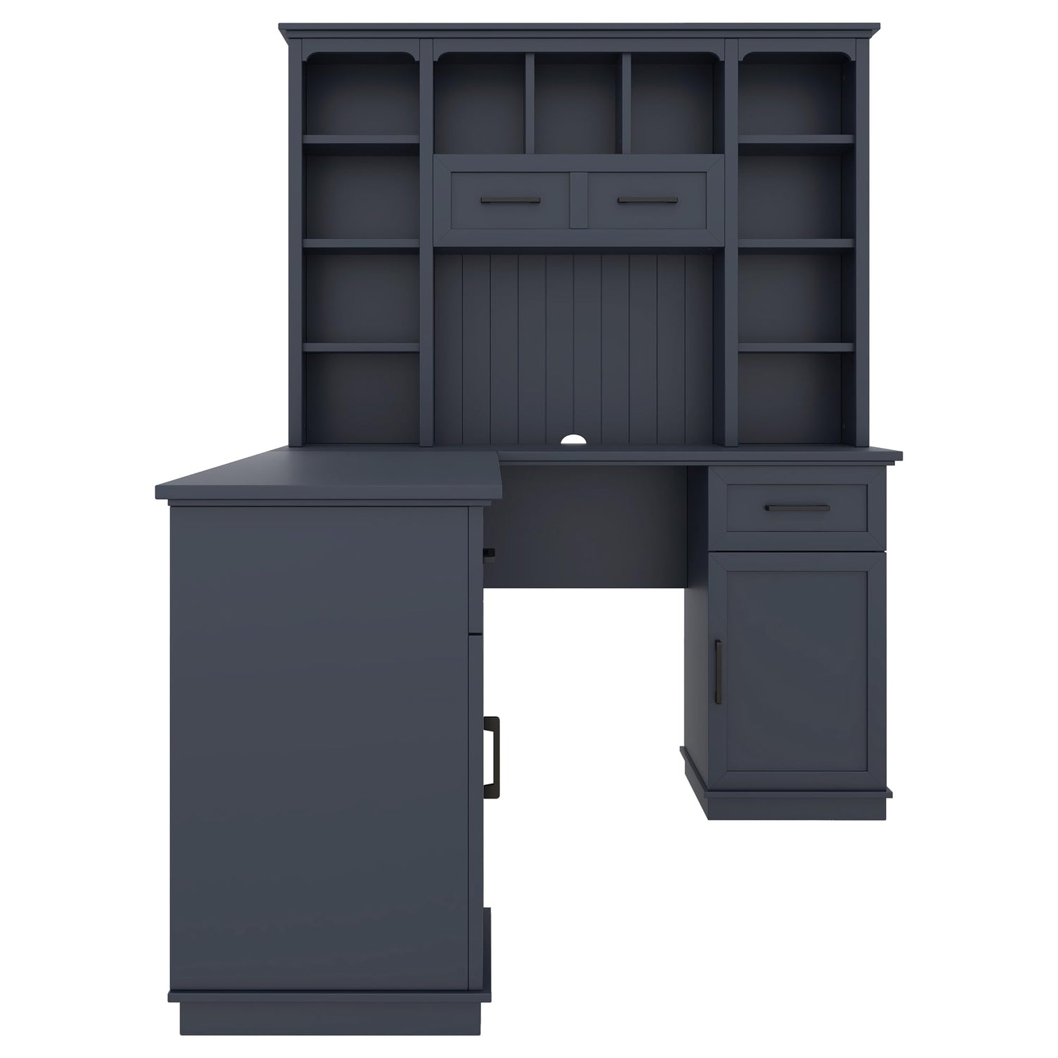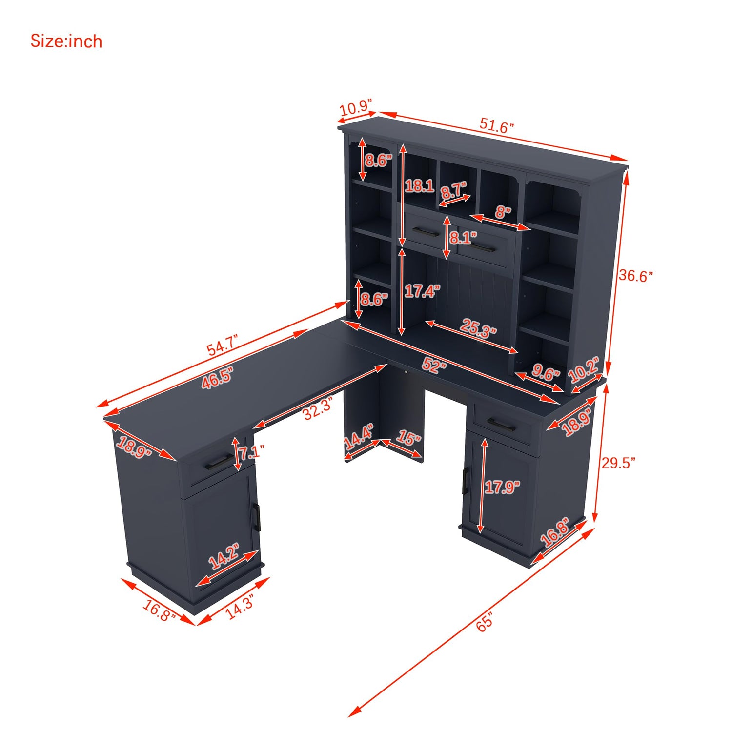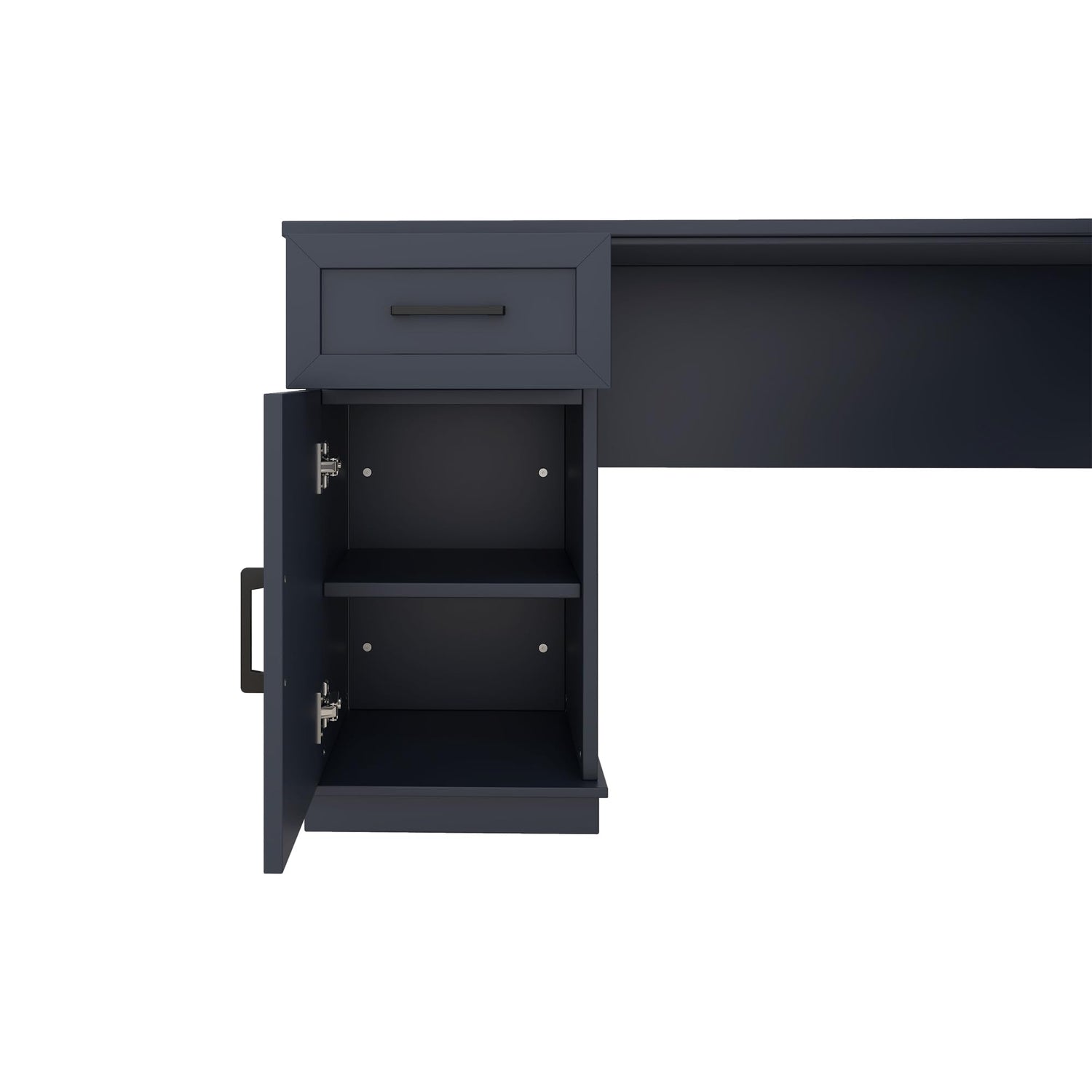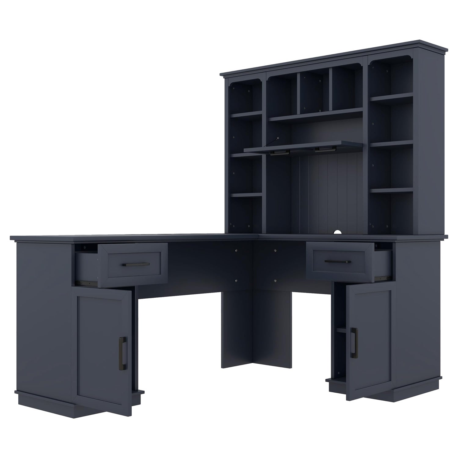 Bellemave L Shaped Executive Desk, Farmhouse l Shaped Desk, Home Office Desk with Storage Cabinet and Shelf, Farmhouse Corner Desk with Drawers, Standing l Shaped Desk, Antique Blue
