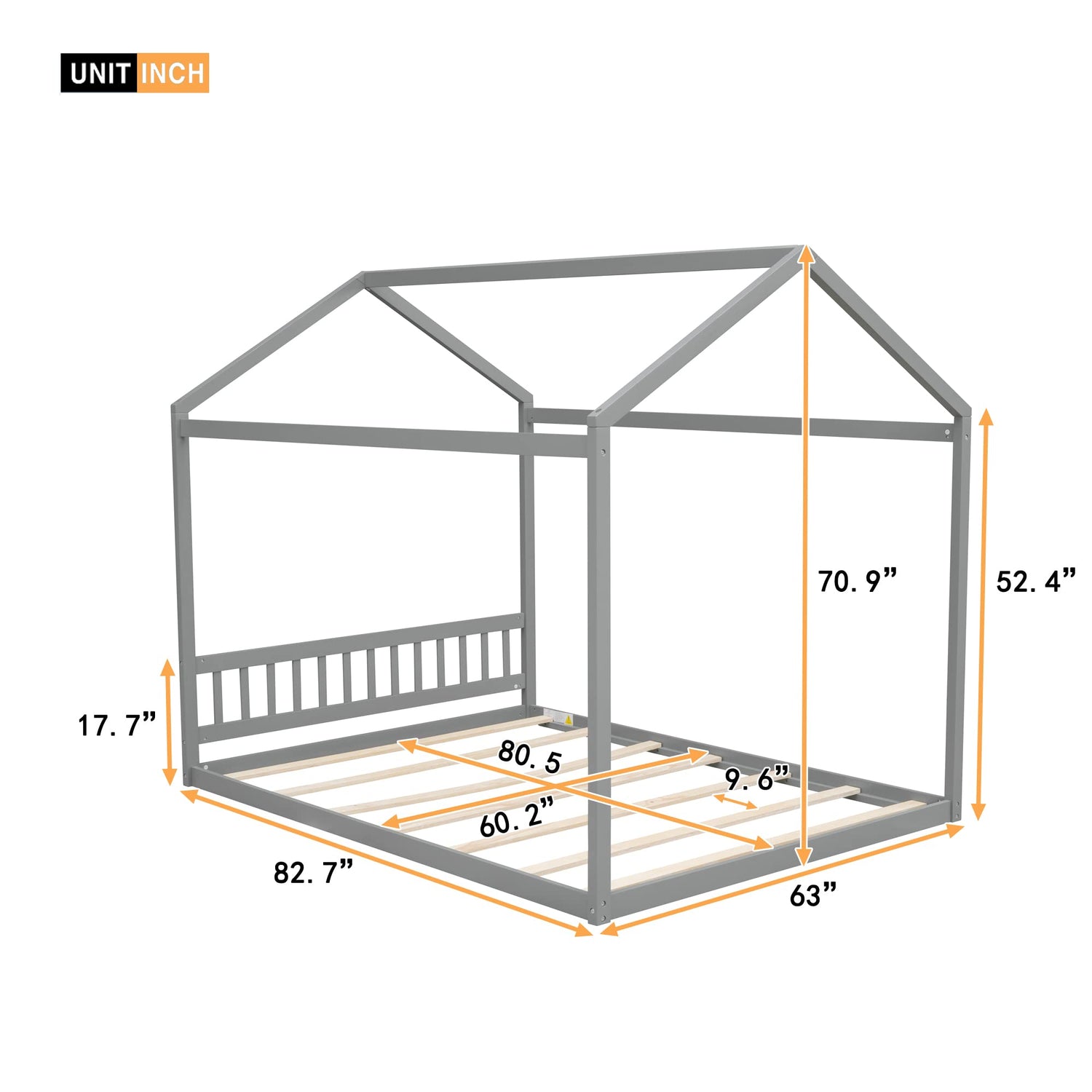 Constructed from sturdy pine wood and MDF boards, the Bellemave house bed ensures robust stability and strength. With a solid load-bearing capacity, it can handle active playtime without fear of wobbling, promising years of joyful use. Measuring 82.7 inches in length, 63 inches in width, and 70.9 inches in height, this queen size platform bed provides ample room for both sleep and creative play.