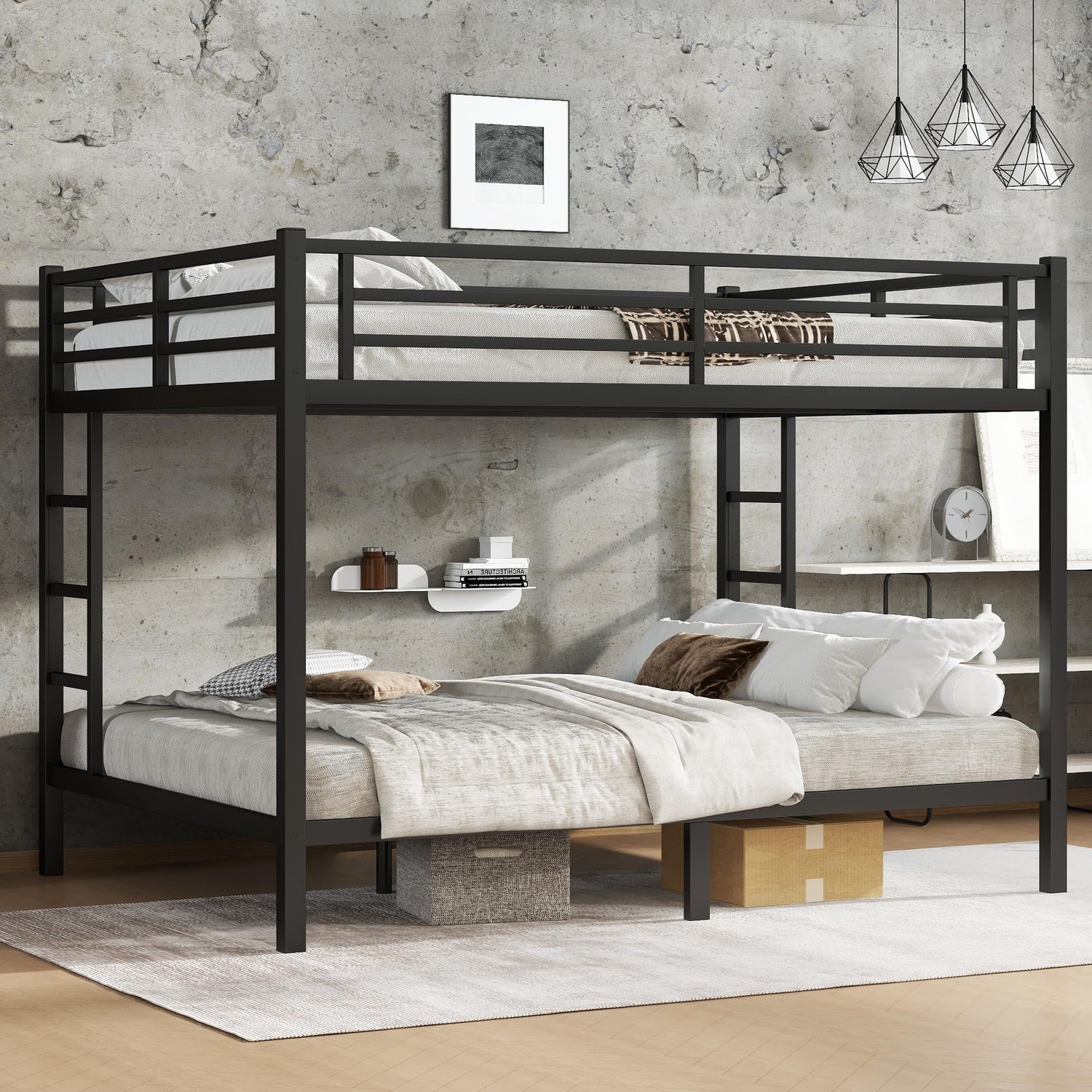 - ใ๐๐ฎ๐ฅ๐ญ๐ข-๐ ๐ฎ๐ง๐๐ญ๐ข๐จ๐ง๐๐ฅ ๐๐ฌ๐๐ ๐ ๐๐๐๐ง๐๐ซ๐ข๐จ๐ฌใQueen size bunk bed features metal bed slats and ladders, making it an ideal solution for limited spaces. By stacking 2 beds, metal bunk bed maximizes floor space utilization. It is perfect for teens and adults, making it an ideal choice for small bedrooms or shared living spaces, helping to accommodate more furniture within the room