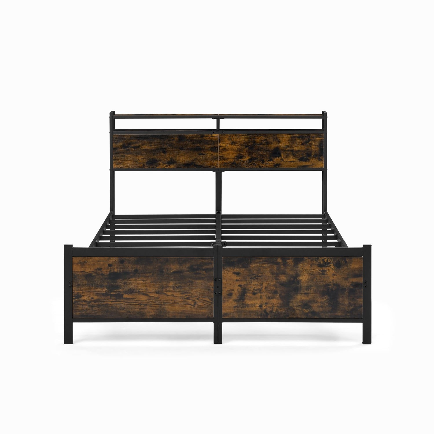 - [Rustic Brown Bed Frame] This iron bed has a headboard and footboard made of MDF boards in a rustic dark brown color that suits any style of bedroom, and a sturdy heavy metal iron frame.