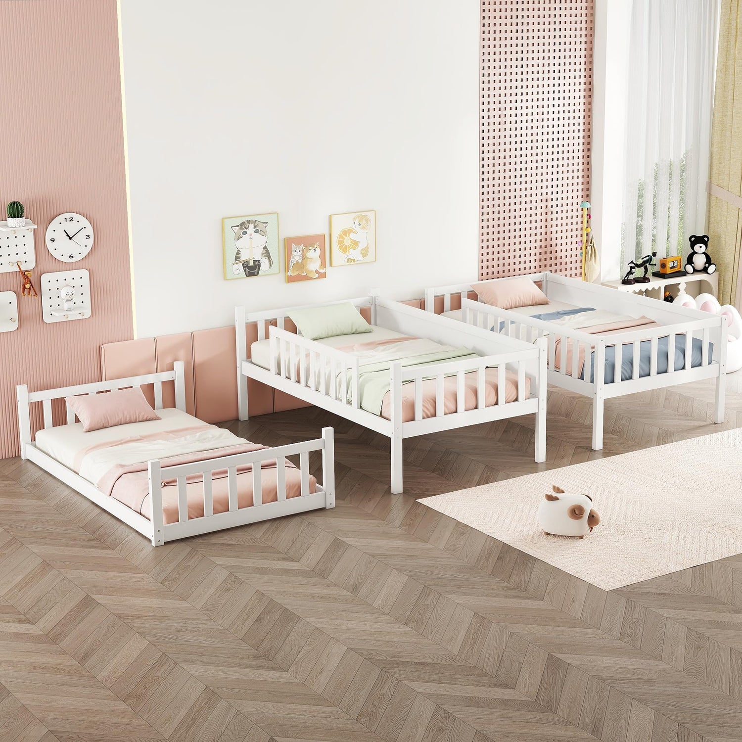 - đ„ăDetachable Triple Bunk BedsăWith a practical design,this twin size bunk beds for kids can be divided into three separate twin beds and put them in different rooms when your children grow up.