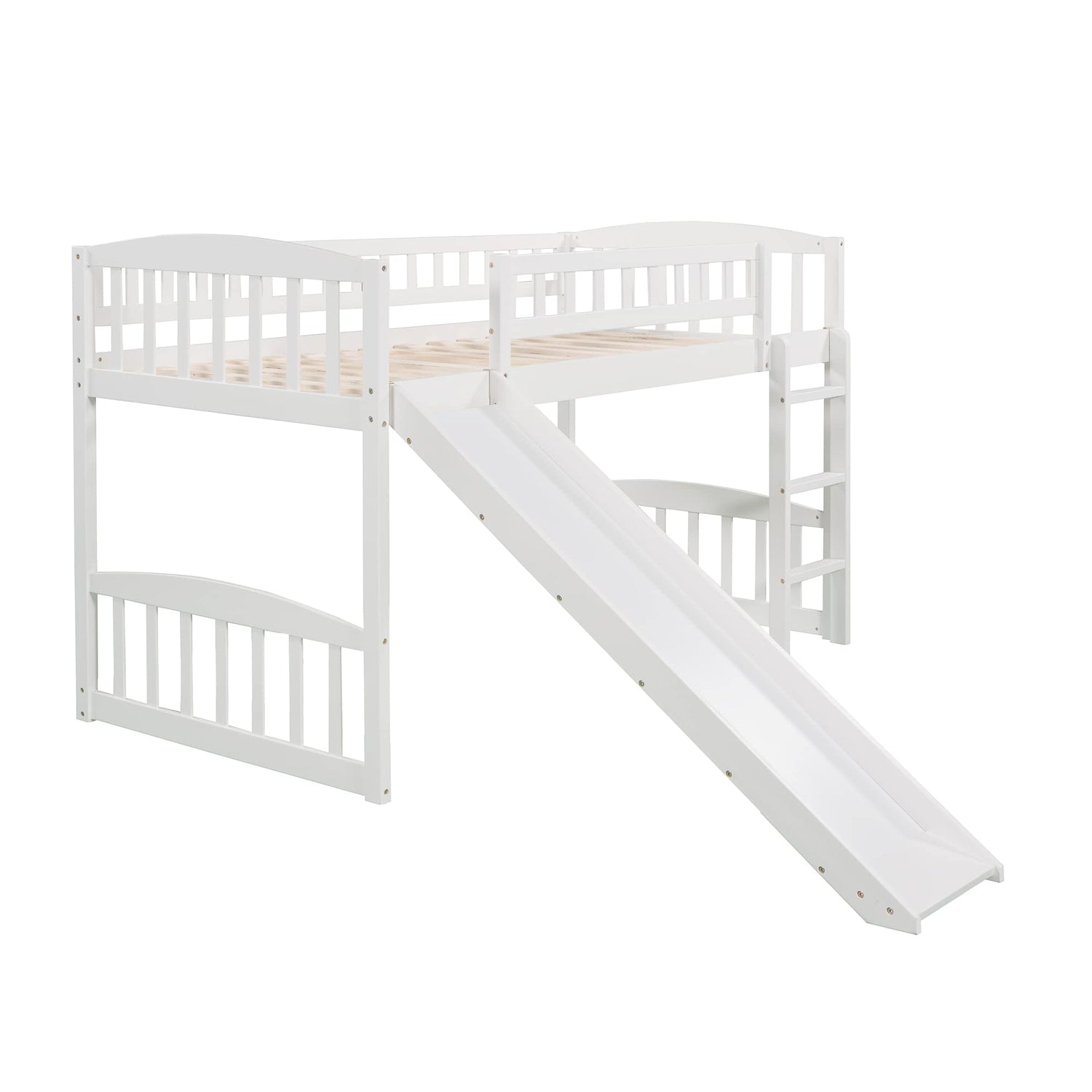 Bellemave Twin Loft Bed with Slide and Ladder, Low Loft Bed for Kids, Wood Loft Bed, for Boys Girls,White