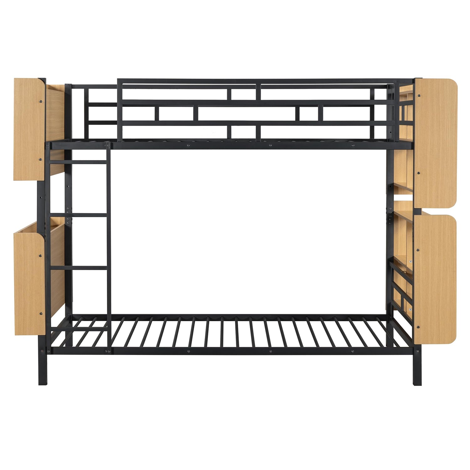 Bellemave Twin Over Twin Bunk Bed with Ladder and Guardrail, Metal Bunk Bed Twin Over Twin with Built-in Storage for Space-Saving, Sturdy Metal Bed Frame, No Box Spring Needed, Black