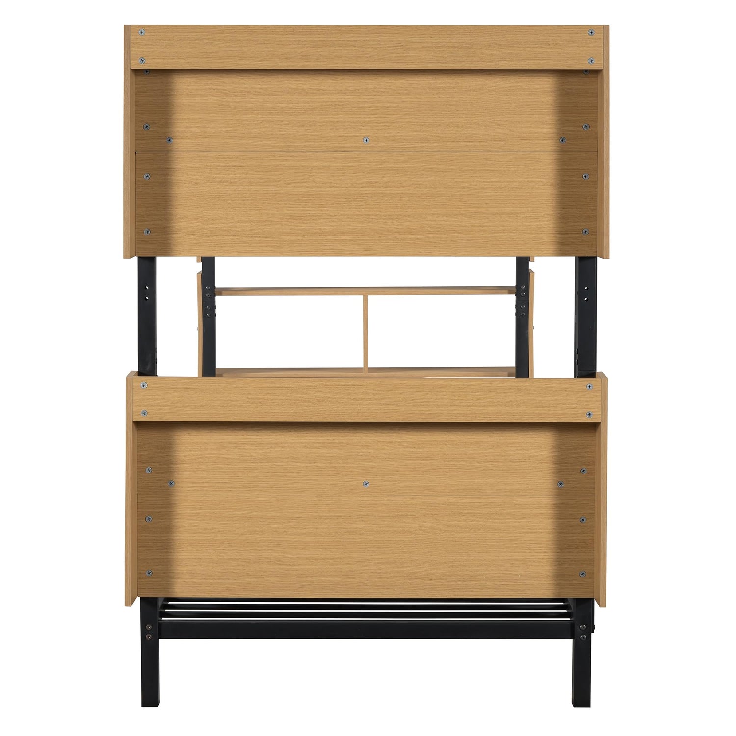 - 🏆【Multiple Storage Spaces】This bunk bed twin over twin stands out from basic metal frame beds with its stowable headboard and end bookcase. These designs offer more storage and organization, essential for keeping your space tidy. The top bunk provides easy-reach storage, eliminating the hassle of going up and down stairs.