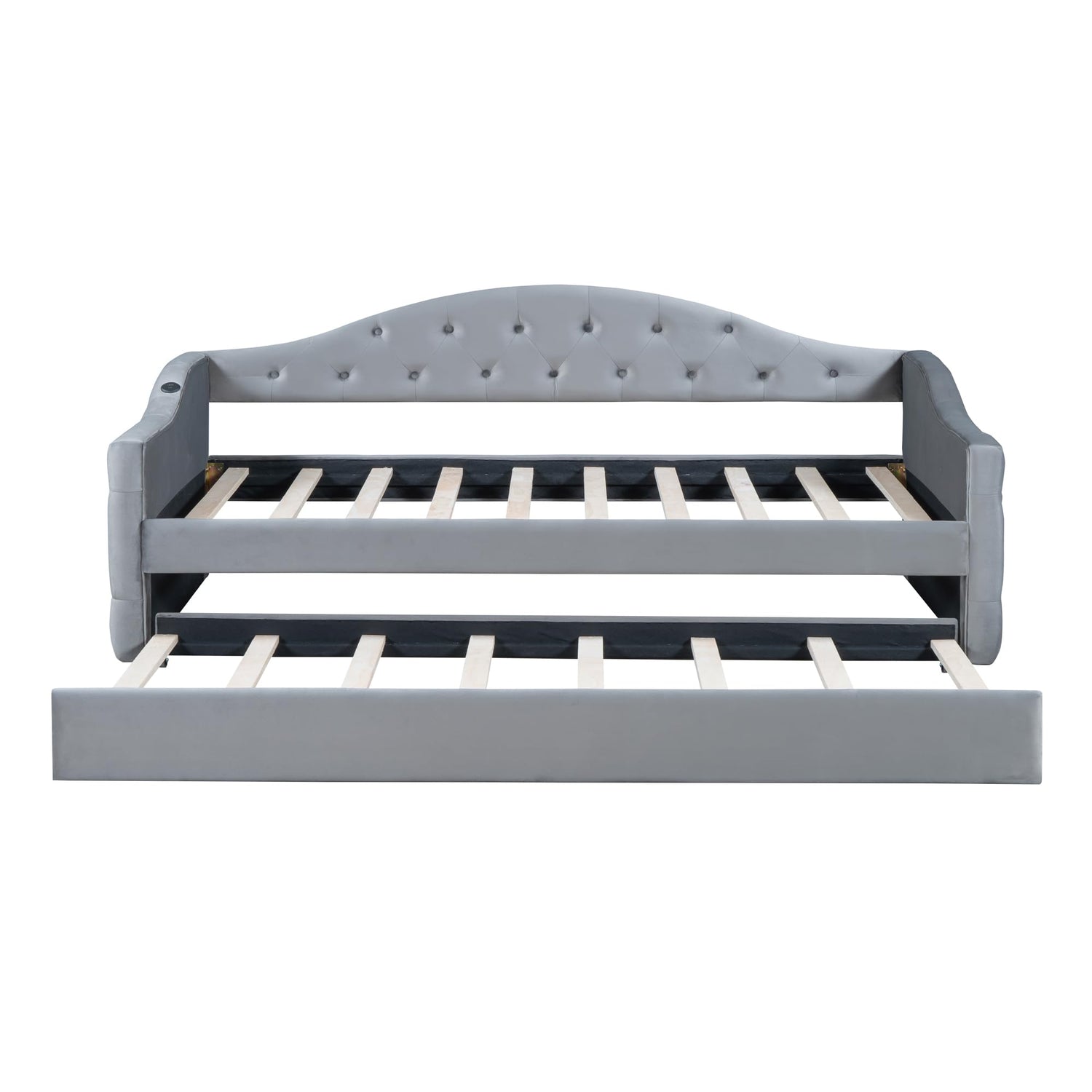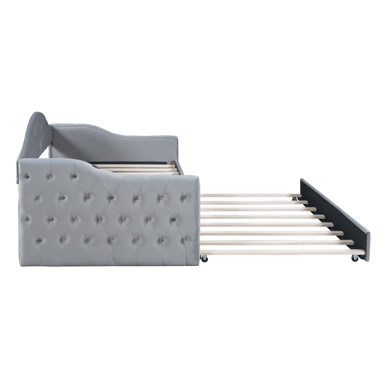 Bellemave Twin Size daybed Frame with Trundle for Adults, Kids, Girls, Teens, Tufted daybeds with Trundle for Living Room, Velvet, (Mattress not Included), Gray