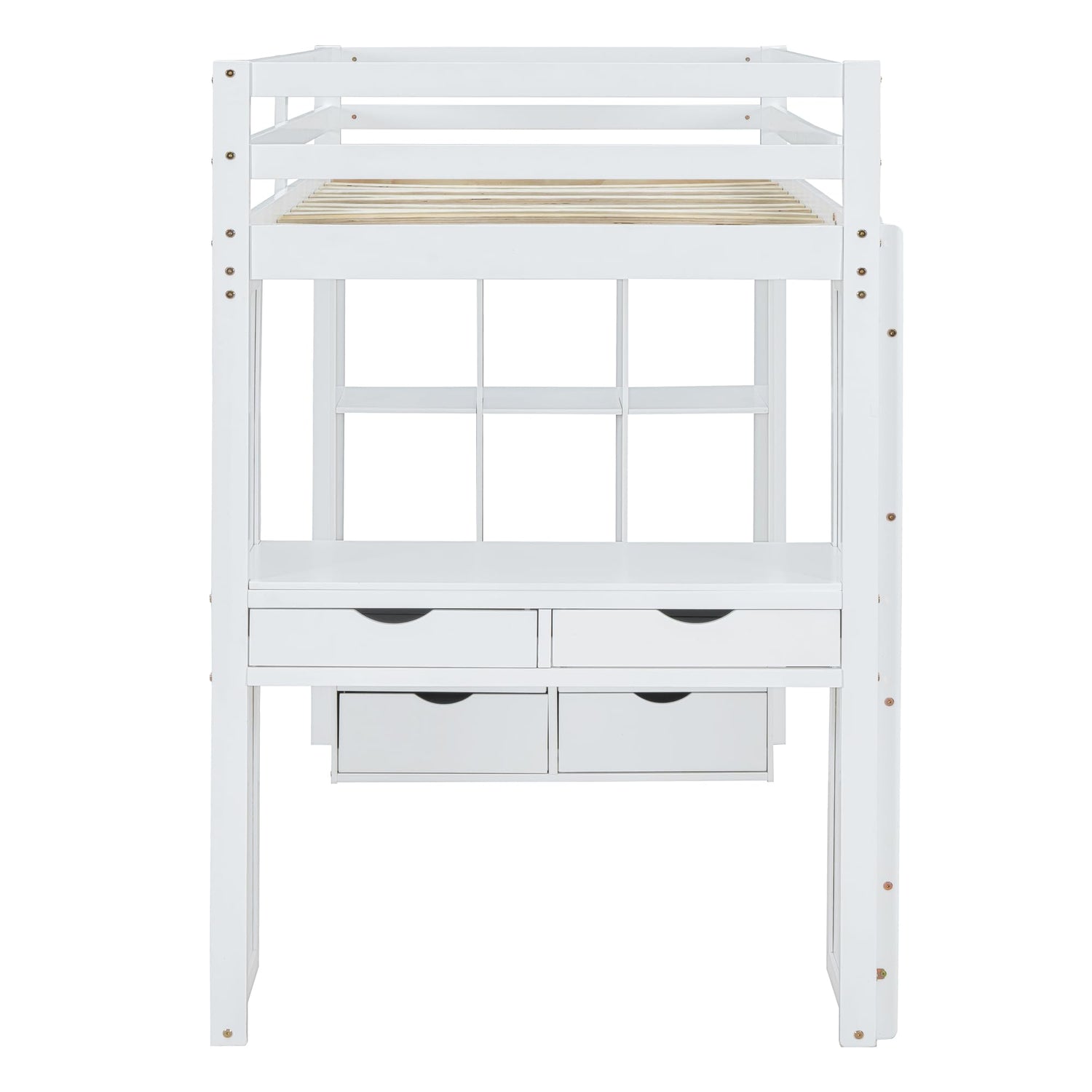 Bellemave Twin Size Loft Bed with Desk and LED Light - Stylish Wooden Frame with Storage for Kids and Adults, White