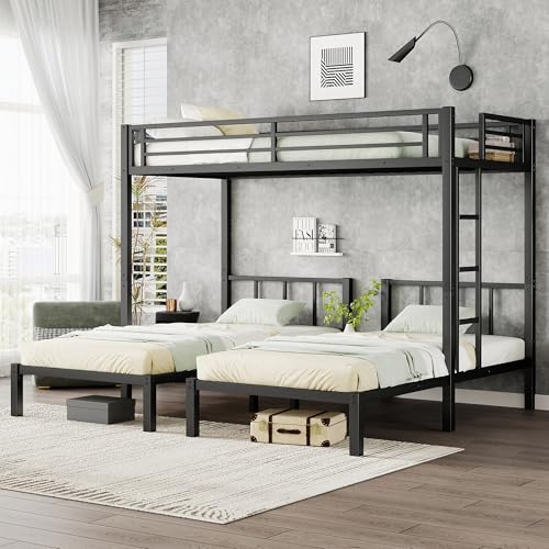 Bellemave Twin Triple Bunk Bed for Kids, Adults, Teens, Metal Bunk Beds for 3 Kids, Triple bunk beds(Heavy Metal, Black)