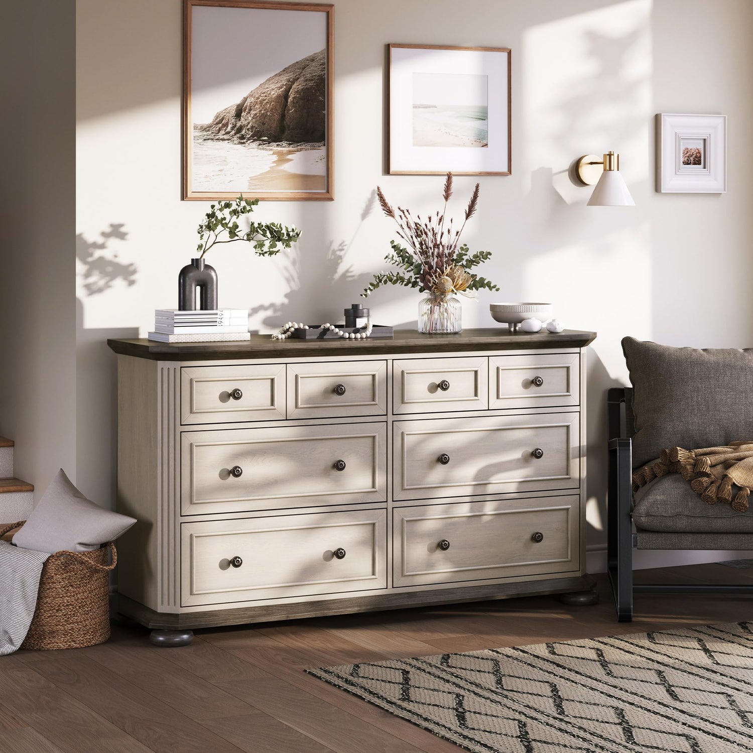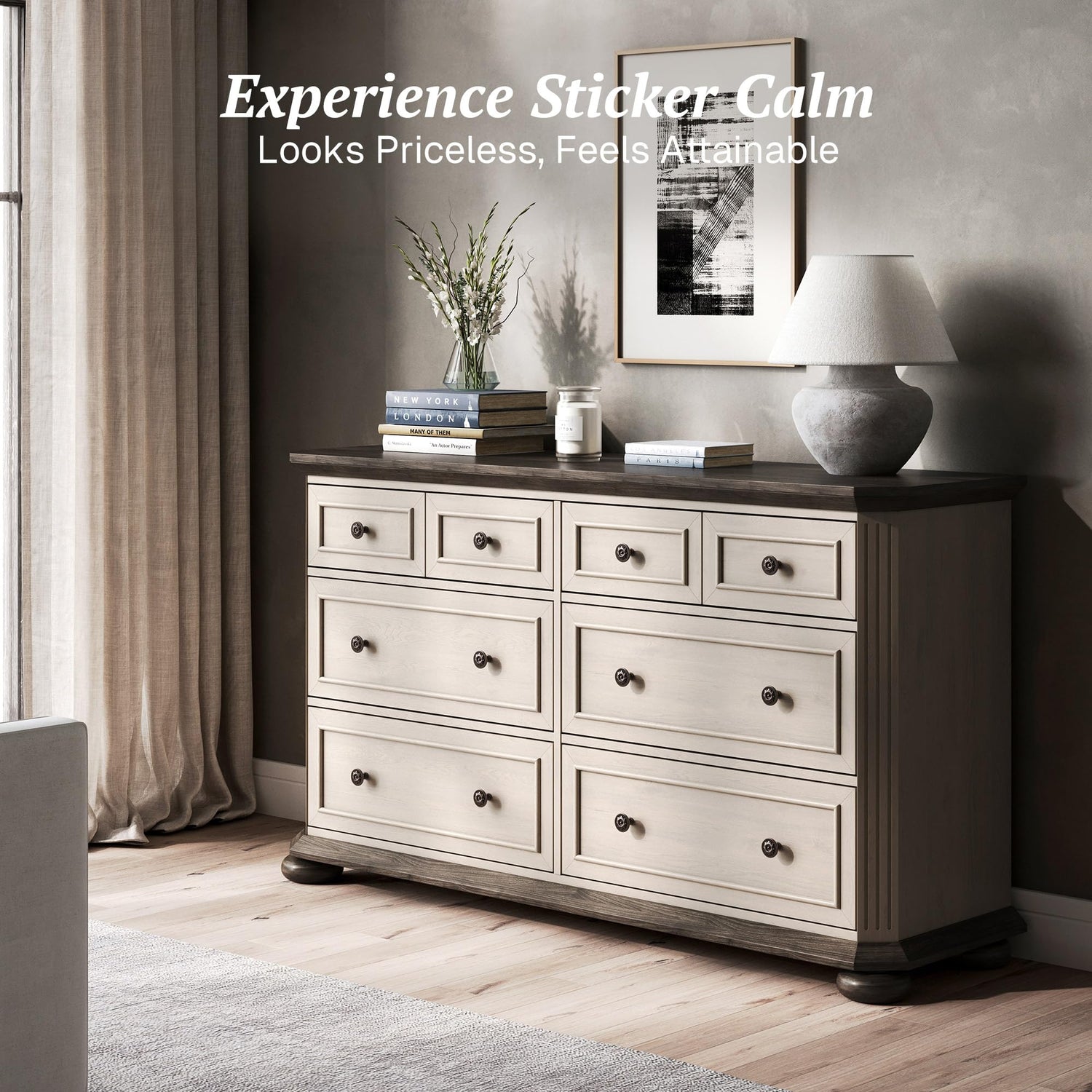 - Dresser Elegance Design with Modern Living: Vintage-inspired antique white finish meets minimalist silhouettes. Nature wood grain and round tapered legs bridge rustic warmth and contemporary spaces-equally at home in boho bedrooms, Scandi living rooms. Neutral tones adapt to seasonal decor shifts effortlessly.