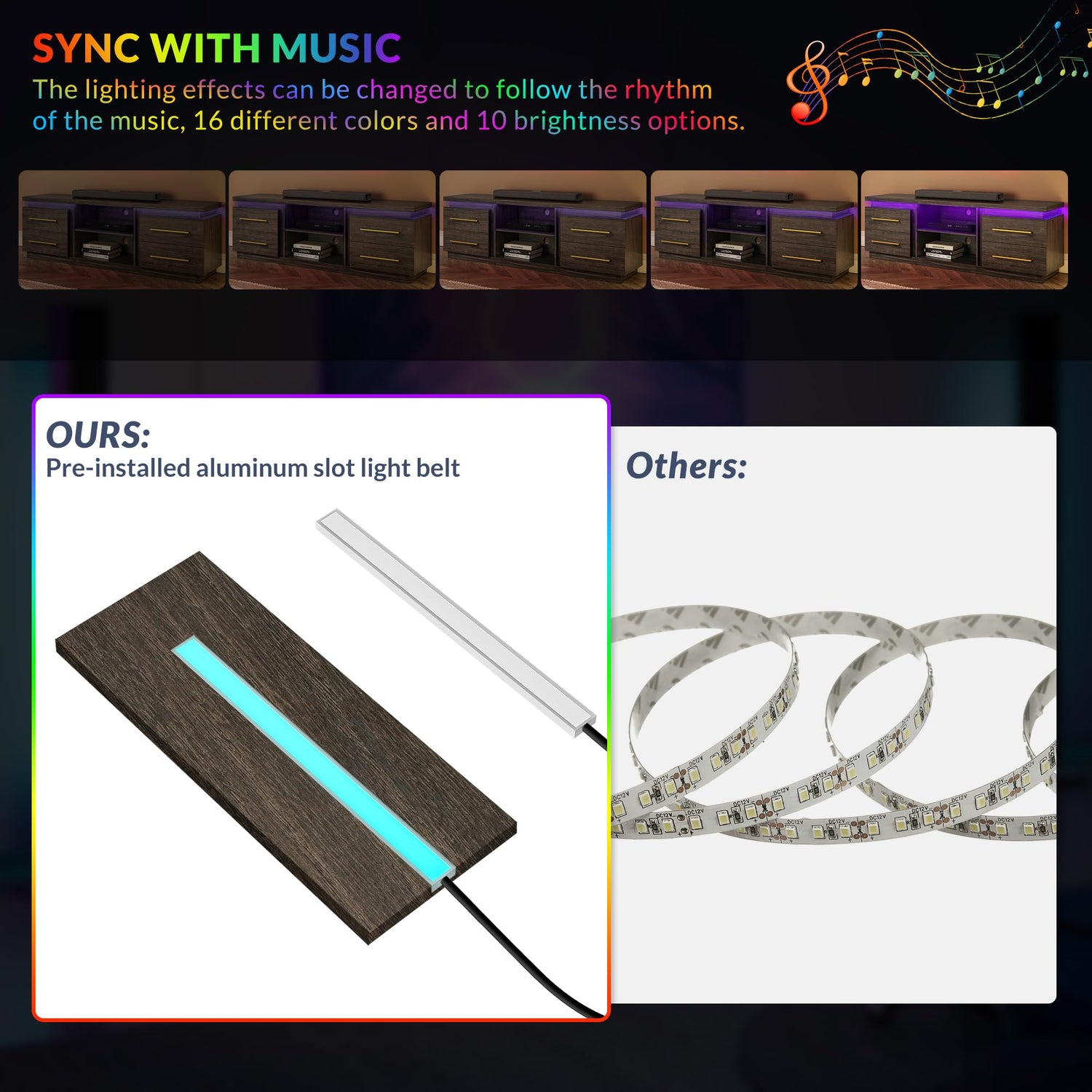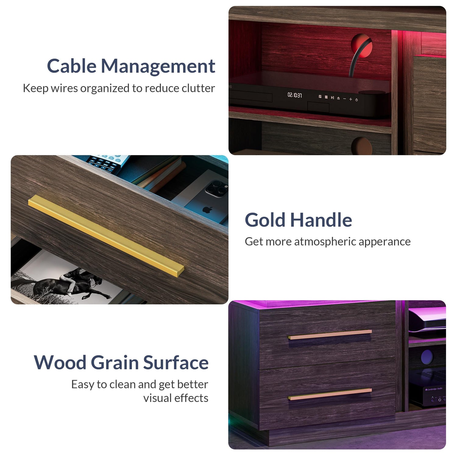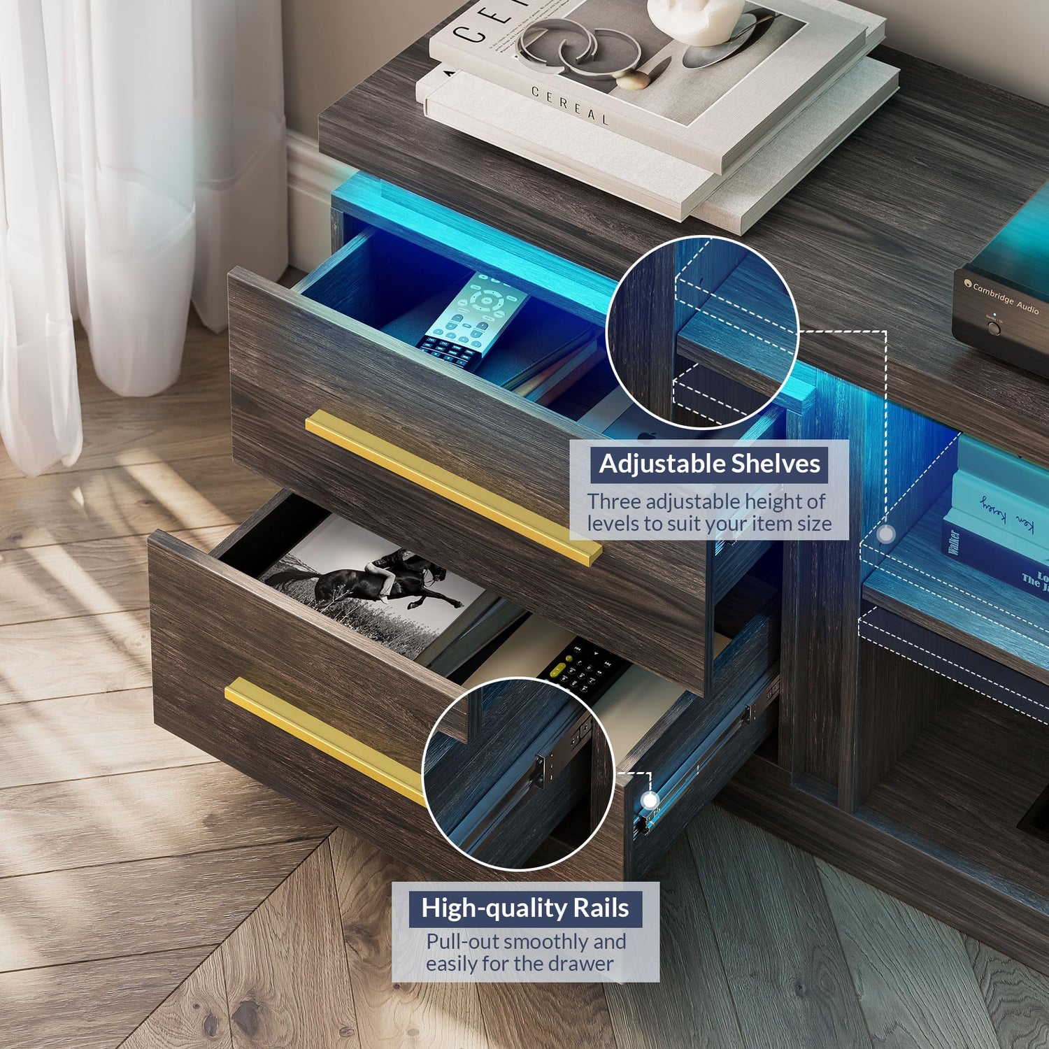 - [Easy Convenience] - The overall dimensions of 15.6"(D) x 66.3"(W) x 21.8"(H) bring a perfect blend of function and size that is neither too big nor too small. An included RF remote control allows you to control all of the LED and music sync features from across the room. With this sideboard entertainment center, your home will have more organization, convenience, and fun.