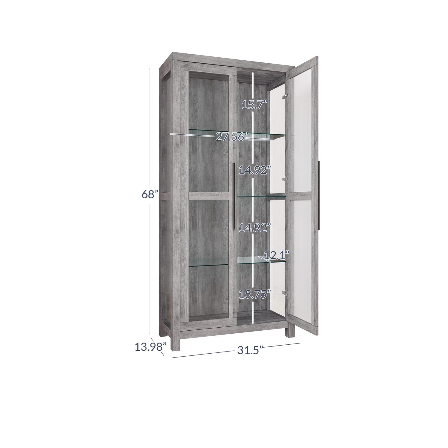 - [Beautiful Storage Display Cabinet With Glass Doors] Dark Walnut or Gray Wash finishes are available on our wooden curio cabinet's stylish design with clean lines. The glass door cabinet is accented with aluminum alloy handles.