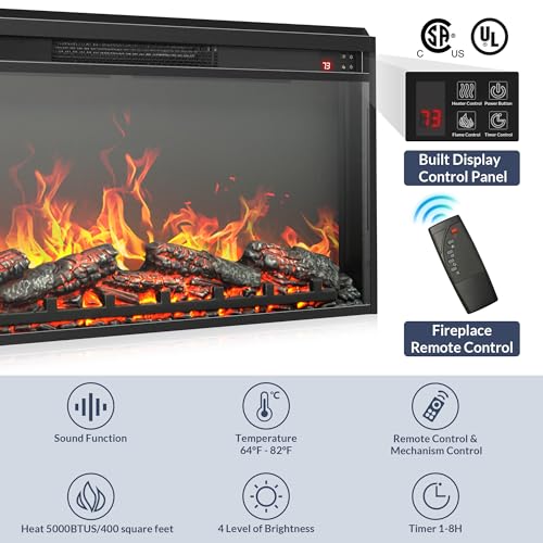 - [Multiple Functions] - This TV stand with fireplace features a 4-level brightness flame effect to set the perfect ambiance. You can enjoy the flame effect with sparkling sound and independently adjust the heat for ultimate control. With a 1400W fireplace, it efficiently heats spaces up to 400 square feet, from 64℉ to 82℉. Safety is ensured with overheating protection and CSA&UL certification. The remote control lets you schedule this TV console table from 1 to 8 hours for added convenience.